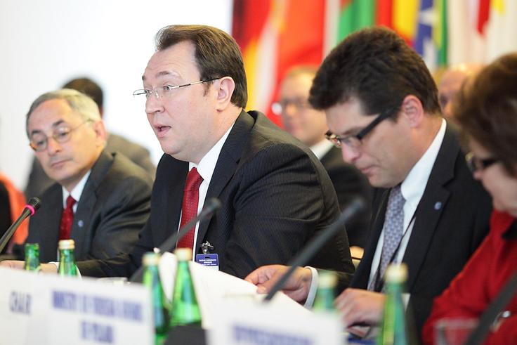Alexandru Tanase, a judge at the Constitutional Court of Moldova and former Minister of Justice, delivers the keynote speech at the opening of the OSCE Human Dimension Seminar on the Role of Political Parties in the Political Process, Warsaw, 18 May 2011.