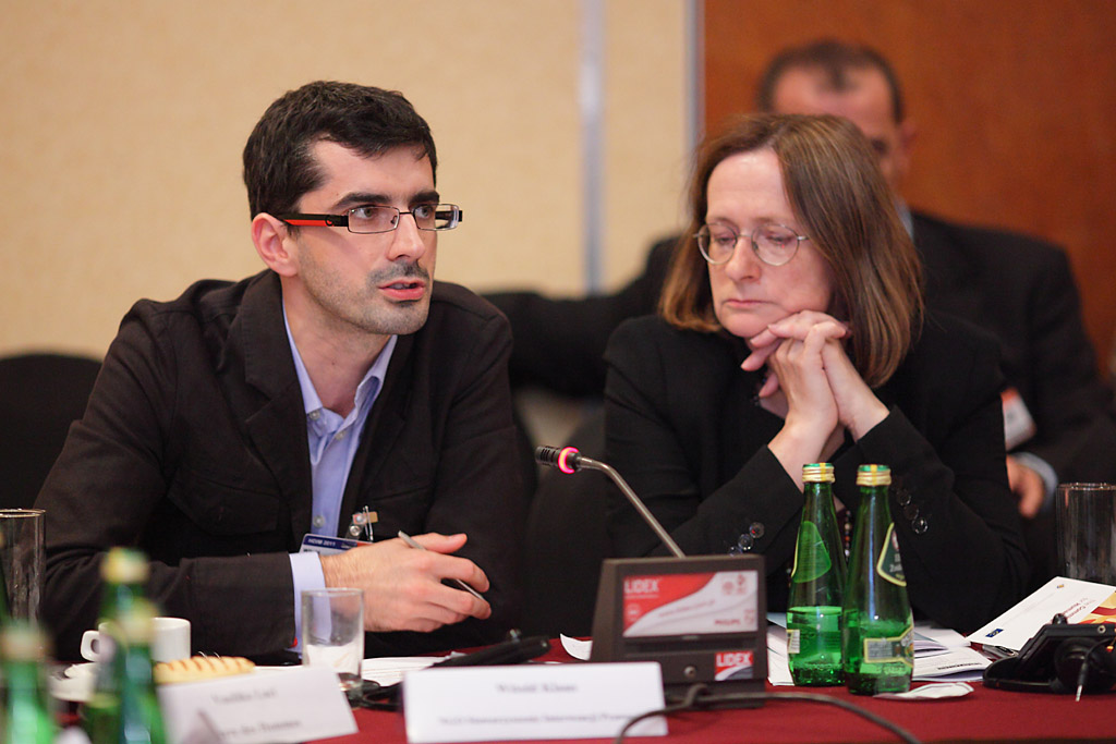 Witold Klaus (left), the President of the Board of the Warsaw-based Association for Legal Intervention, said that the detention of a minor migrant is a violation of their human rights during a side event on preventing child trafficking held at the OSCE Human Dimension Implementation Meeting in Warsaw, 6 October 2011.