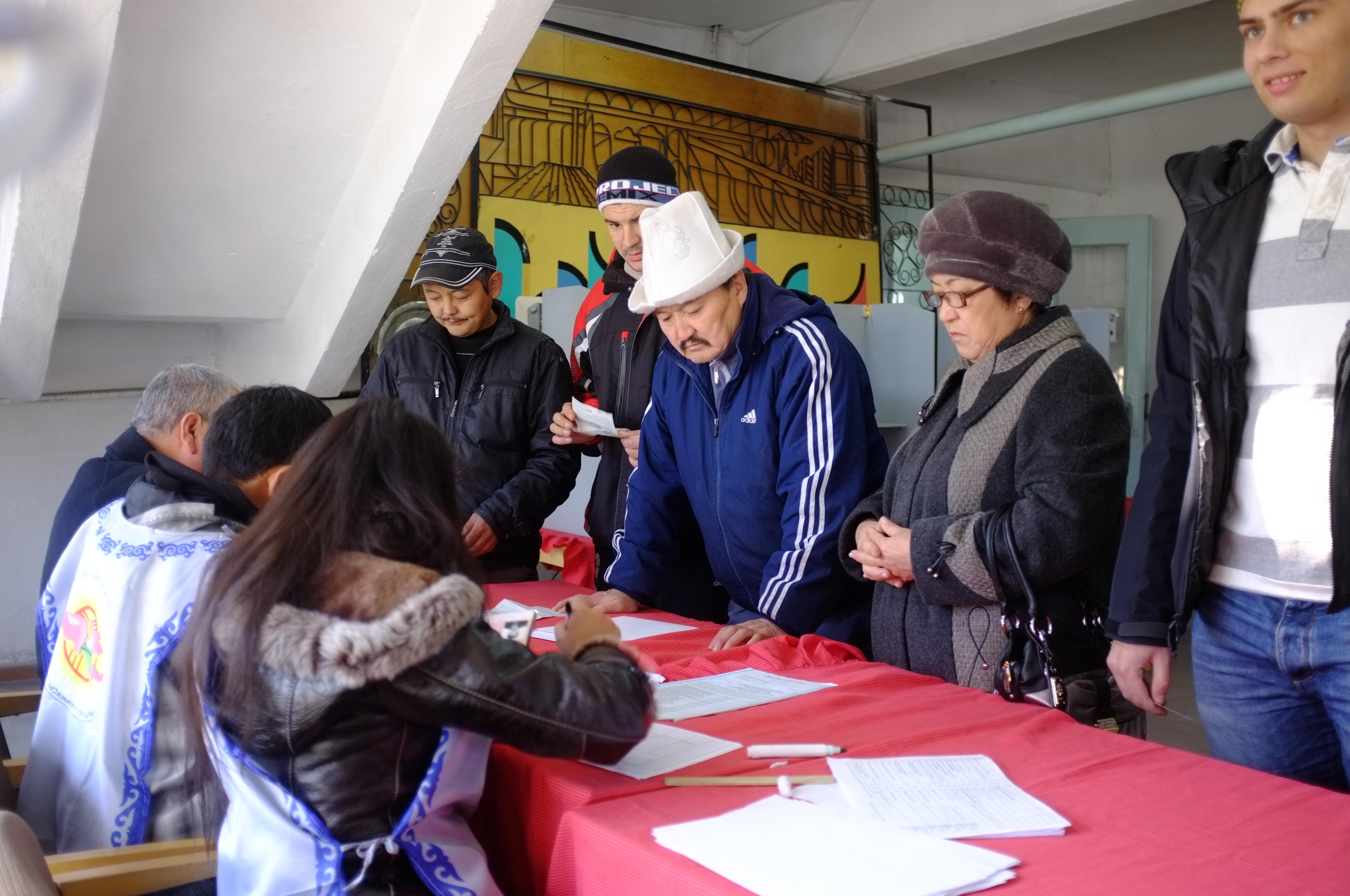 Voters in a polling station in Bishkek during the presidential election in Kyrgyzstan, 30 October 2011.