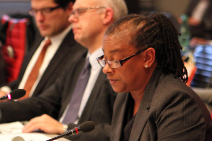 Doreen Lawrence, mother of murdered British teenager Stephen Lawrence, gives the keynote address at the OSCE Supplementary Human Dimension Meeting on Prevention of Racism, Xenophobia and Hate Crimes through Educational and Awareness-Raising Initiatives, Vienna, 10 November 2011.