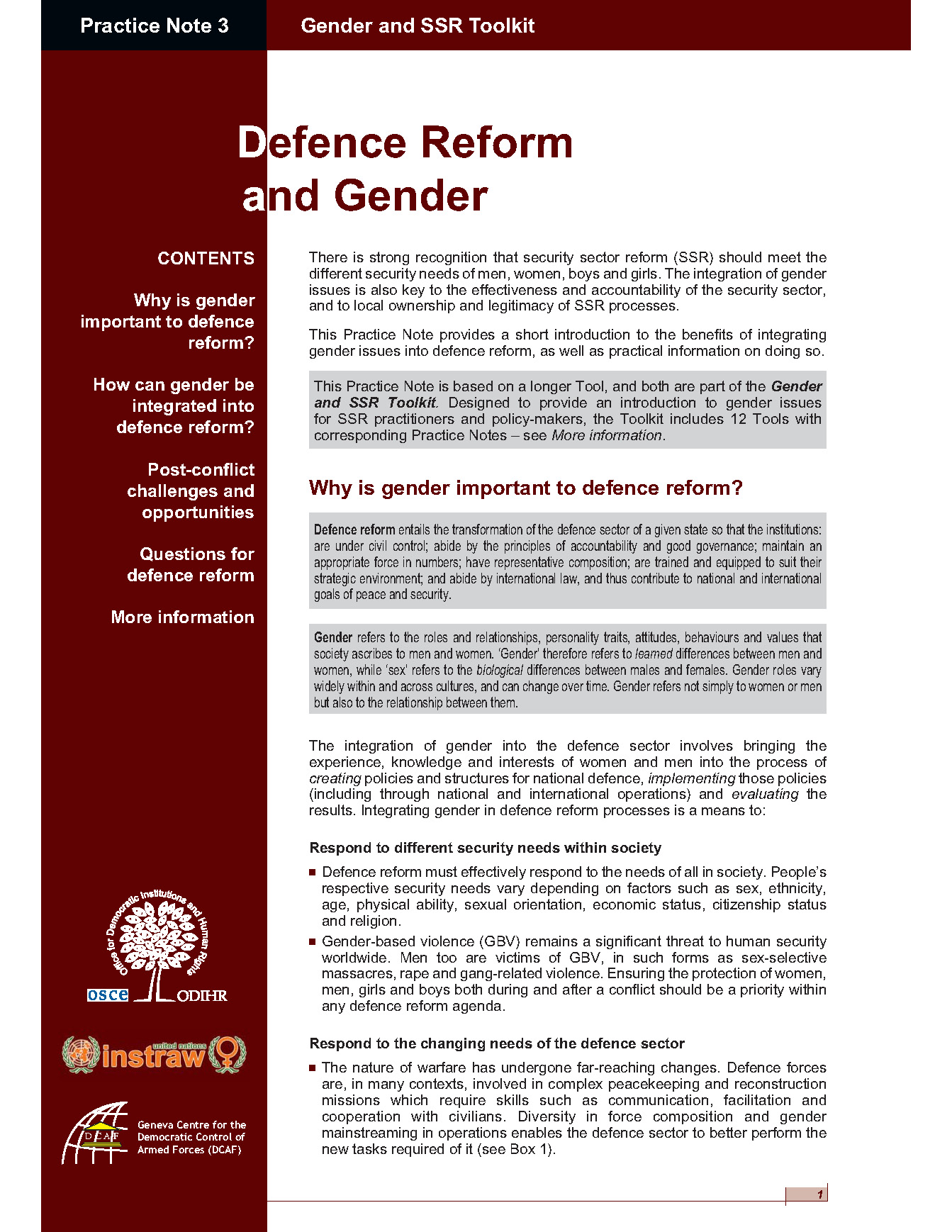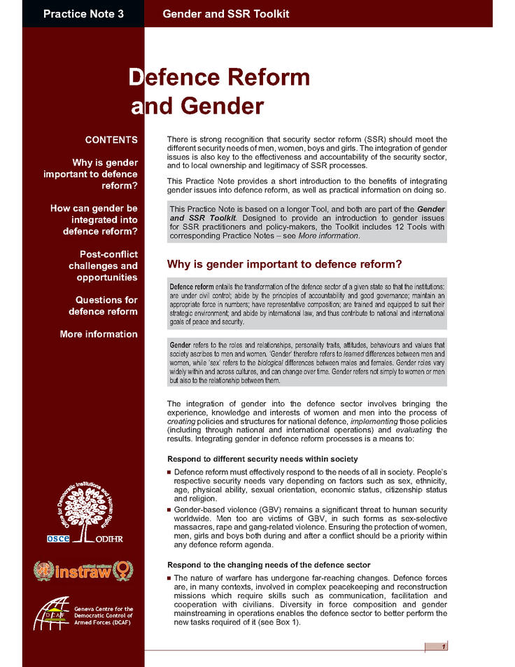 Gender and Security Sector Reform Toolkit - Practice Note 3