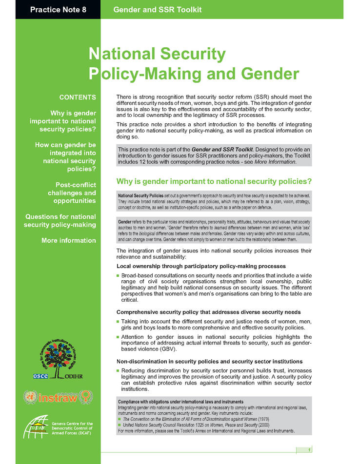 Gender and Security Sector Reform Toolkit - Practice Note 8