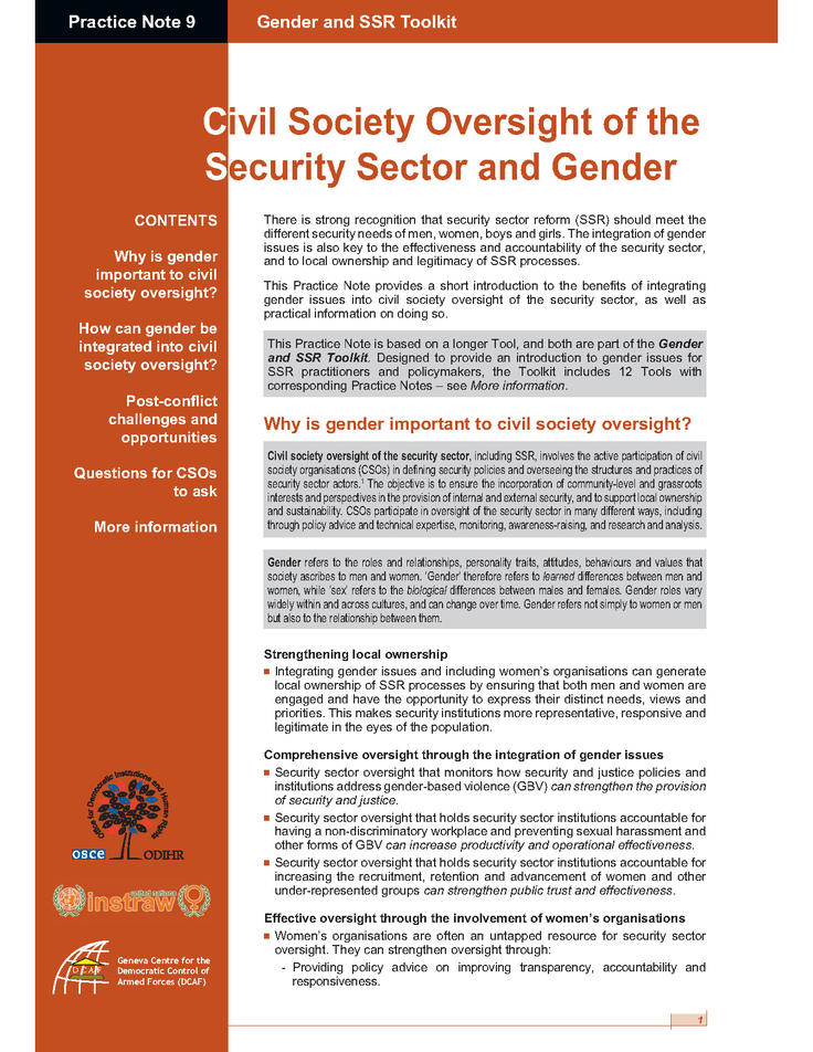 Gender and Security Sector Reform Toolkit - Practice Note 9