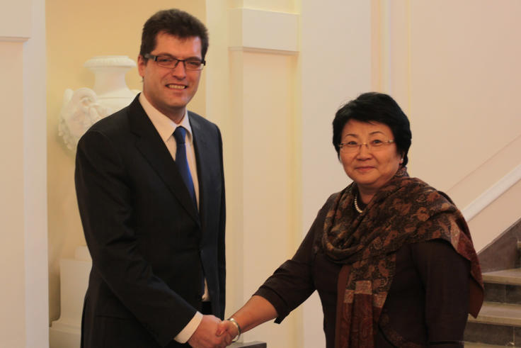 Roza Otunbayeva, politician and former President of the Kyrgyz Republic, met ODIHR Director Janez Lenarčič at the ODIHR office in Warsaw, 16 December 2011.