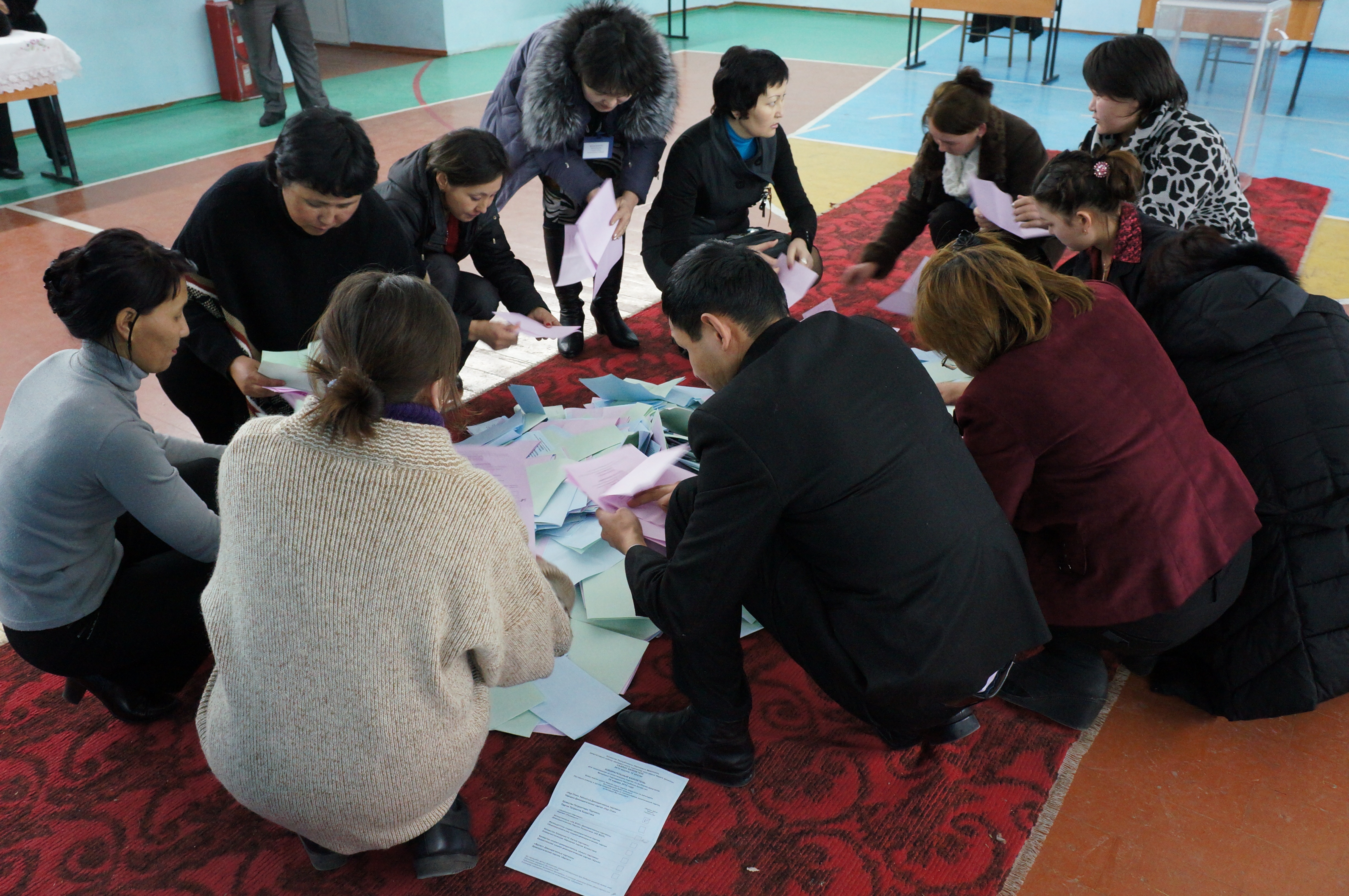 The counting of ballots begins at a polling station in Saryozek, southeast Kazakhstan following early parliamentary elections, 15 January 2012.