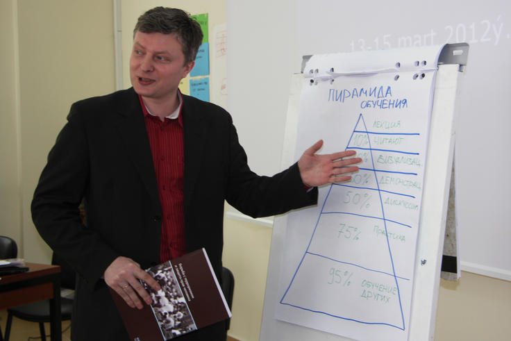 ODIHR expert Ihar Kuzminich delivers a presentation to police trainers of the S.A. Niyazov Institute of the Ministry of Internal Affairs of Turkmenistan during a course on the protection of human rights while countering terrorism, Ashgabat, 14 March 2012.