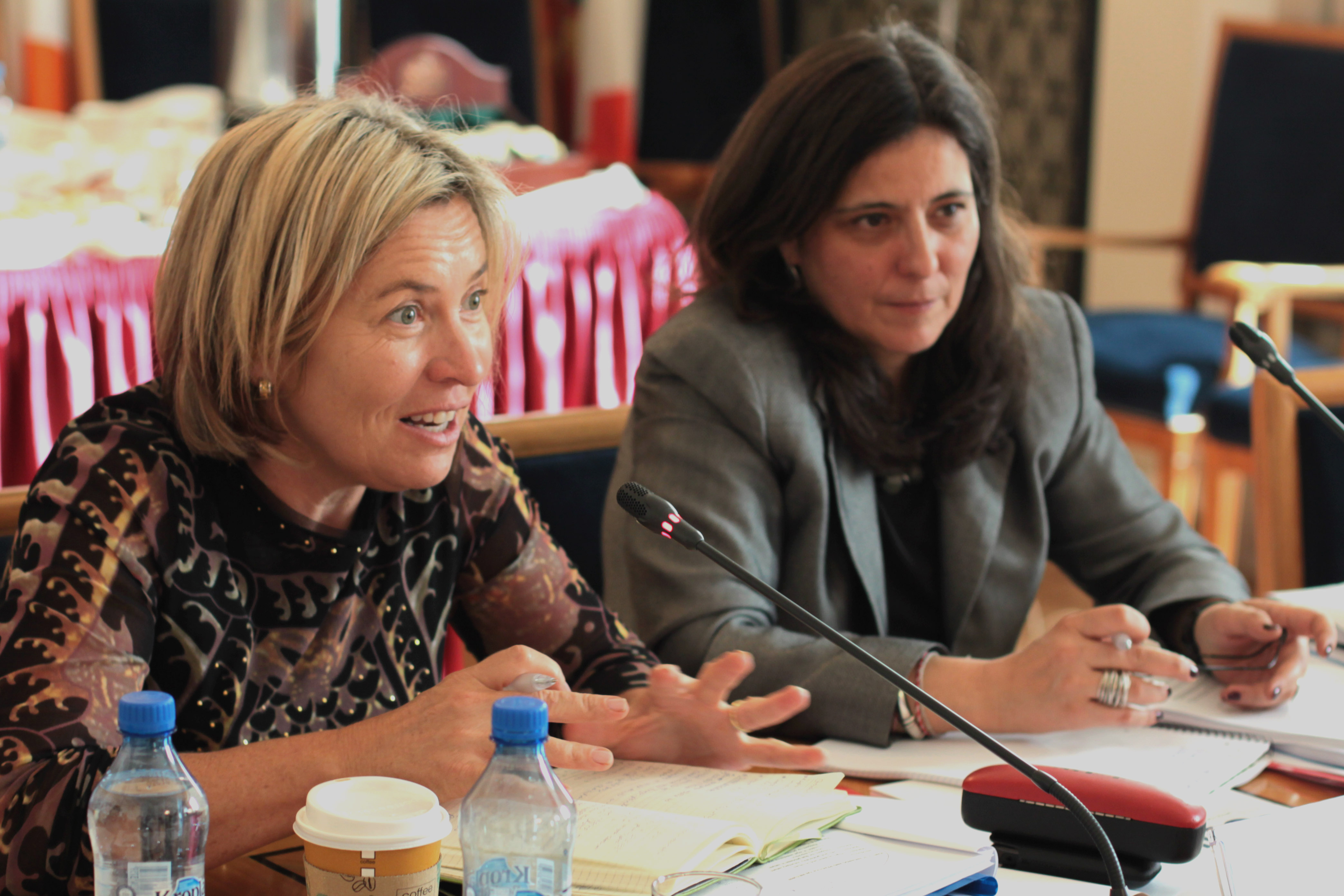 Anne Gallagher (l), ODIHR expert, and Mariana Katzarova, ODIHR’s Senior Adviser on Anti-Trafficking issues, moderated the discussions at an Expert Group Meeting on Human Rights Protection in the Return of Trafficked Persons, Warsaw, 27 March 2012.