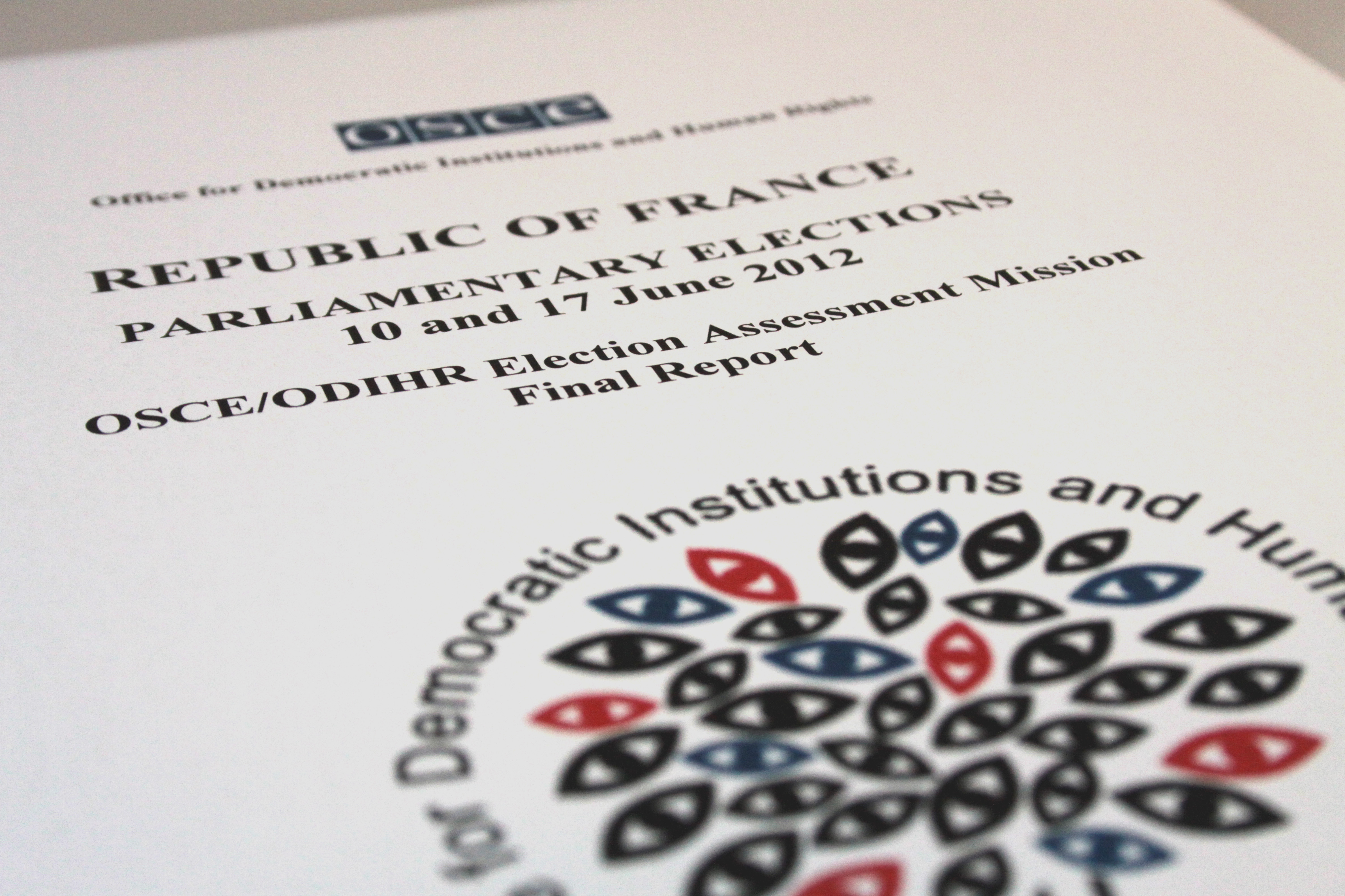 The OSCE/ODIHR’s final report on France’s parliamentary elections on 10 and 17 June 2012 concludes that though the legal framework provides a sound basis for the conduct of democratic elections, some of its elements should be improved to bring it fully in line with OSCE commitments.