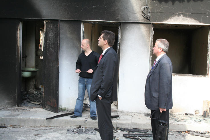 ODIHR Director Janez Lenarcic (centre) visits a village destroyed in the aftermath of the August 2008 conflict in Georgia, 18 October 2008.