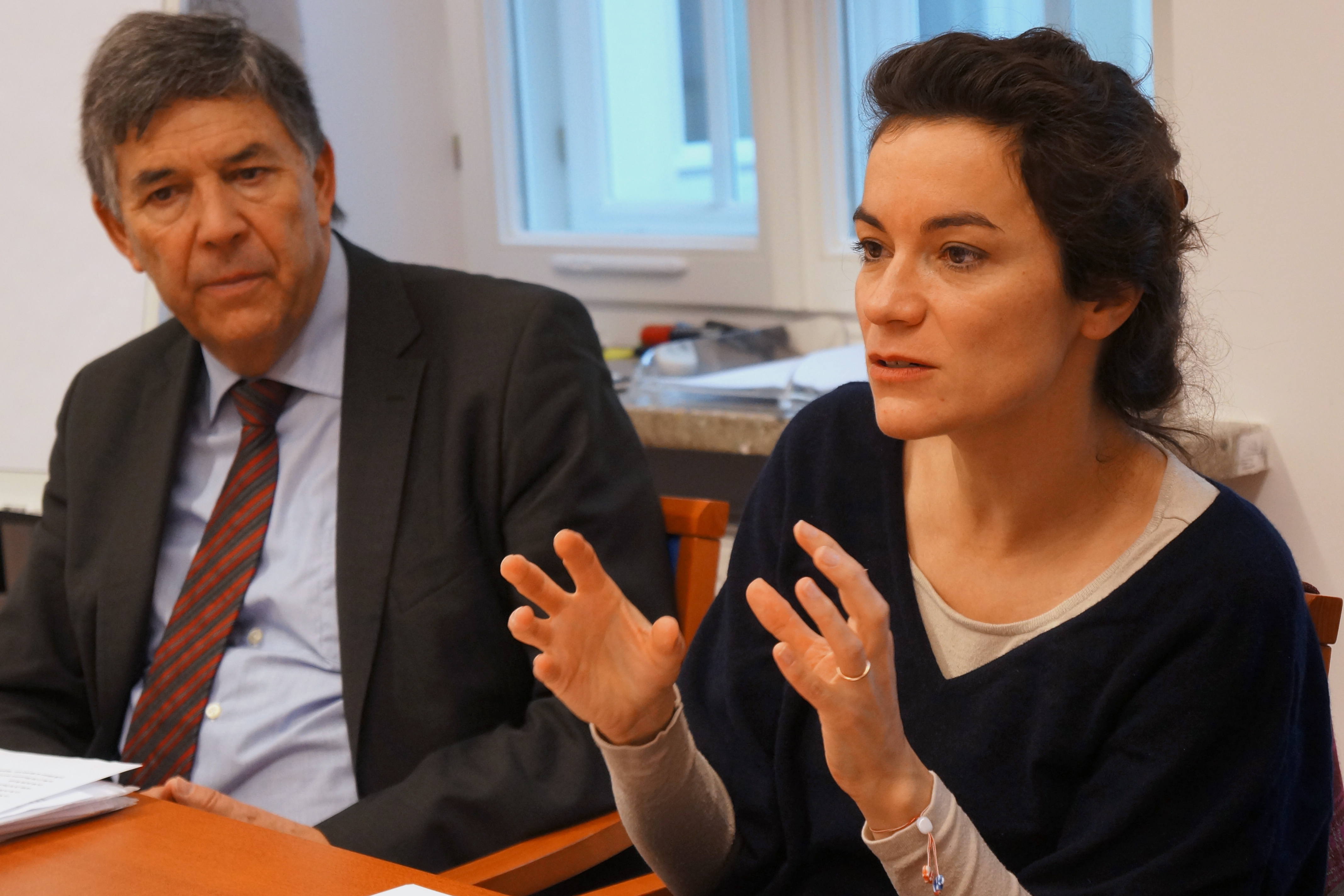Floriane Hohenberg, Head of ODIHR’s Tolerance and Non-Discrimination Department, addresses participants of a meeting on promoting the freedom of religion or belief as Thomas Wipf, from the European Council of Religious Leaders’ Executive Committee, listens. Warsaw, 22 November 2012.