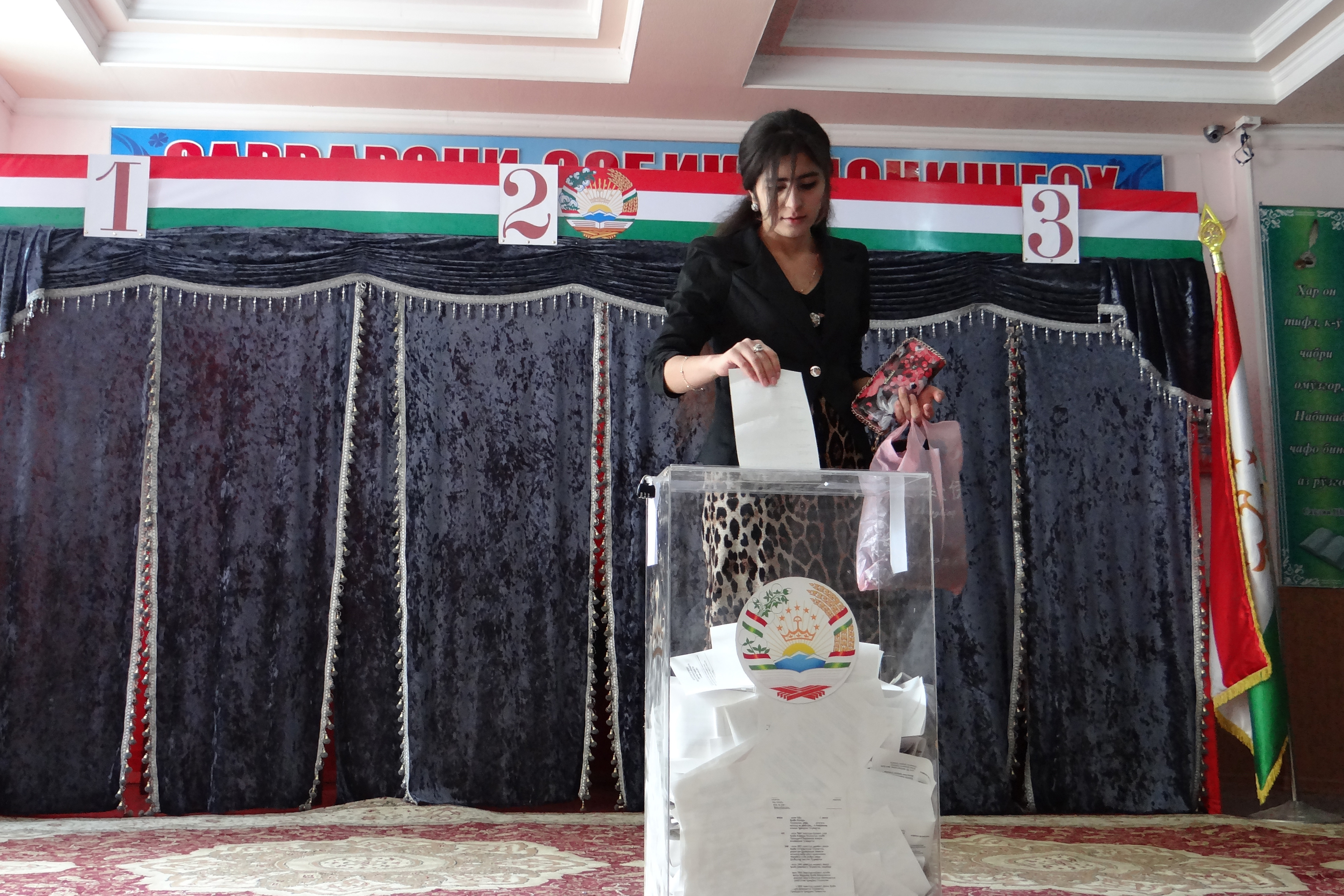 A voter casts her ballot in Dushanbe during the presidential election in Tajikistan on 6 November 2013.