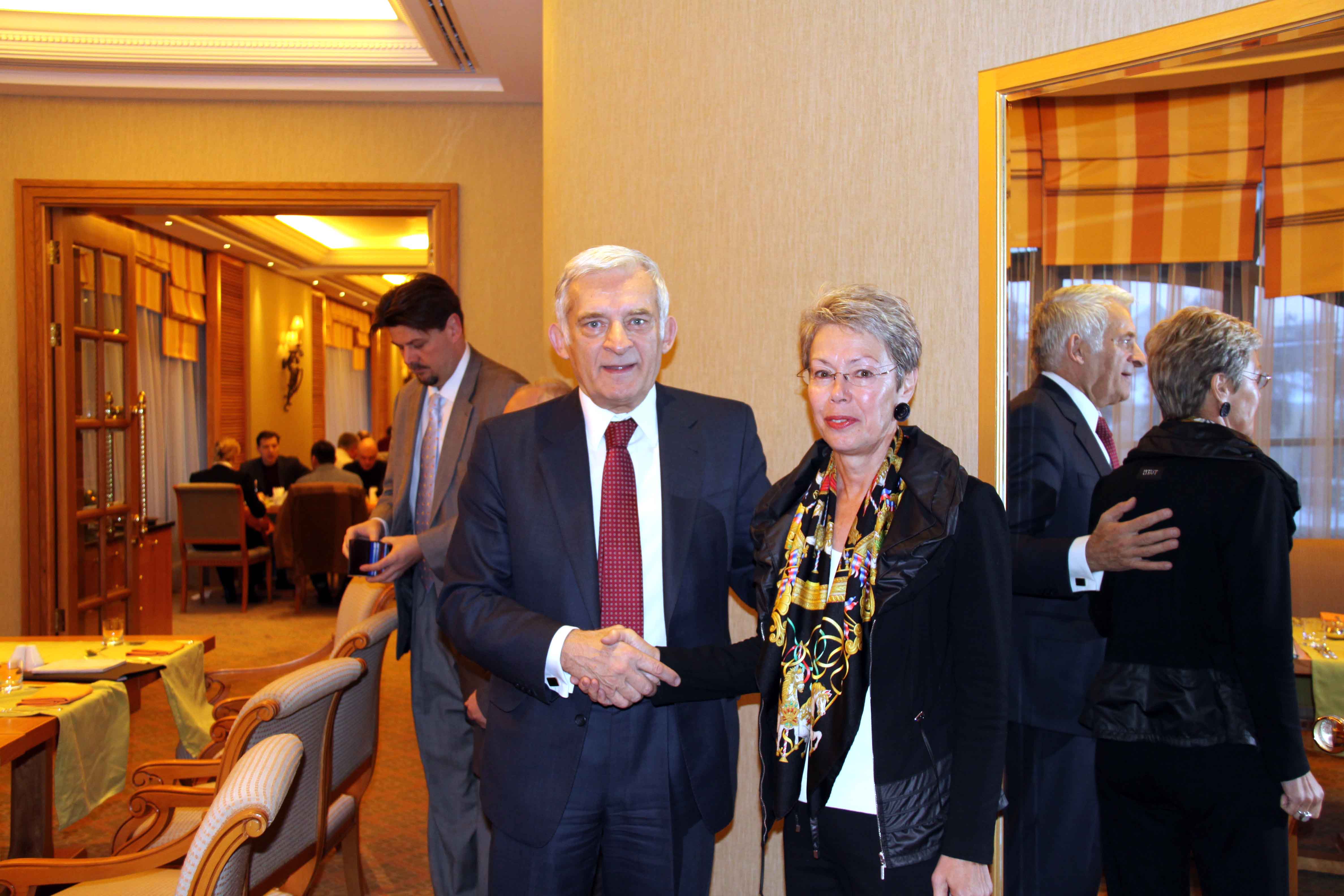 Jerzy Buzek (l), President of the European Parliament, and Heidi Tagliavini, OSCE/ODIHR Election Observation Mission Head, meet to discuss co-operation in the run-up to the 17 January 2010 Ukrainian presidential election, Kyiv, 22 December 2009.