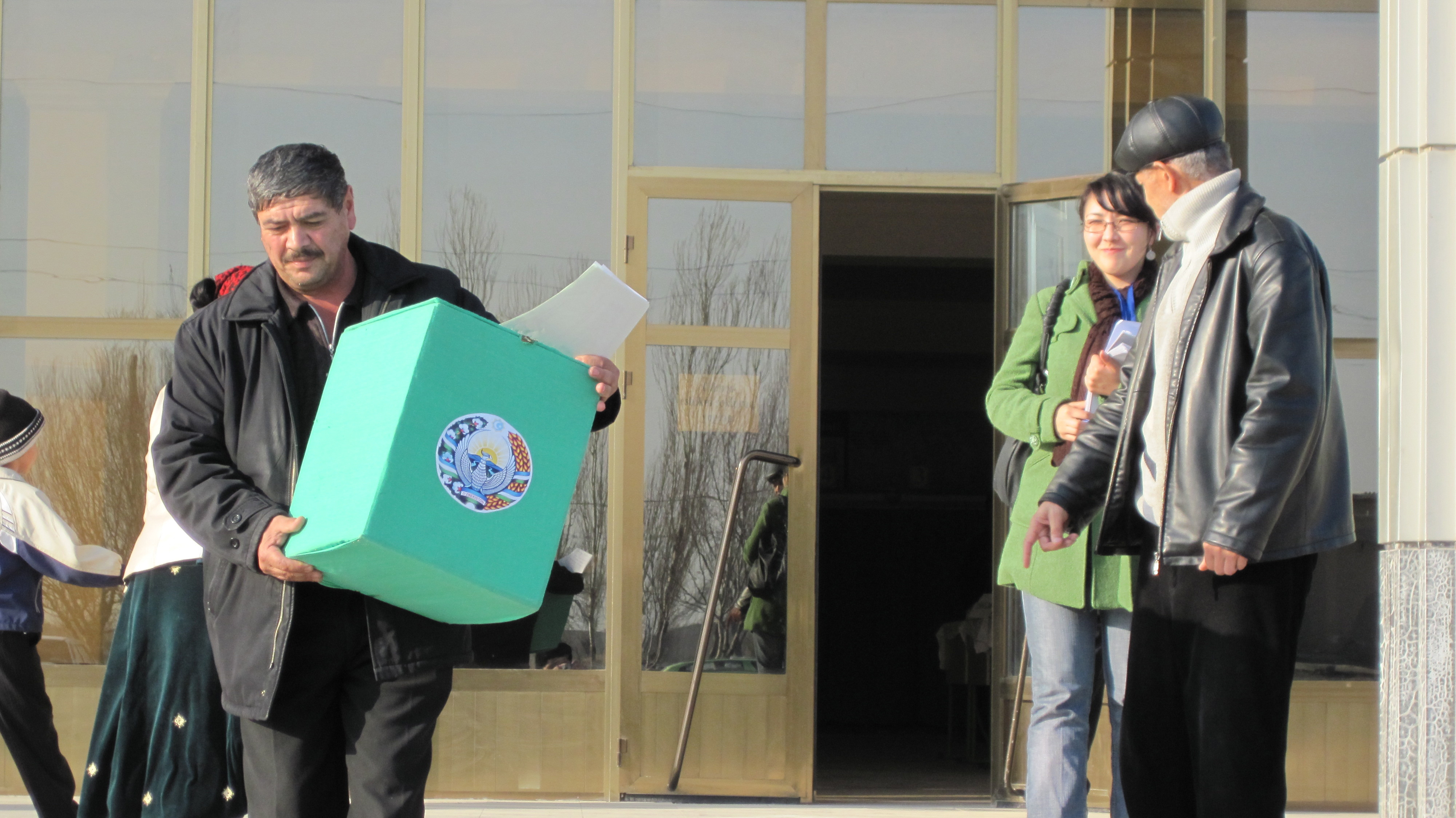 Ubayd Baqoyev. Chairman of the Bukhara precinct election committee, carrying a mobile ballot box during the 27 December 2009 parliamentary elections in Uzbekistan.