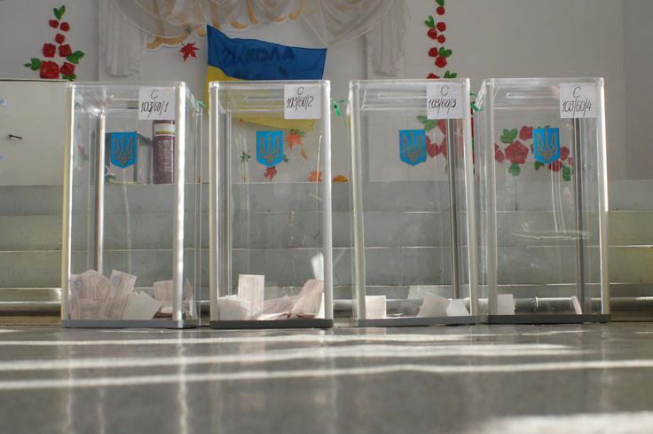Ballot boxes in one of the polling stations in the town of Znamianka, Kirovohrad region, Ukraine, during the second round of the presidential election, 7 February 2010.