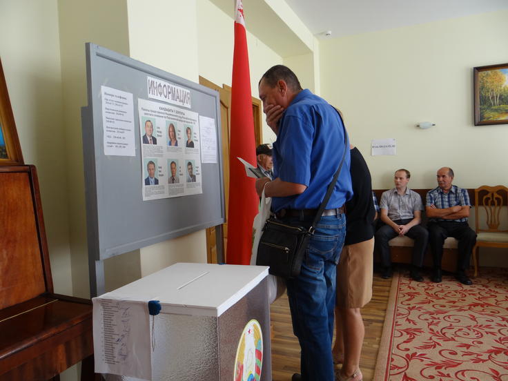 A voter considering his options at a polling station in Minsk during parliamentary elections in Belarus, 11 September 2016.