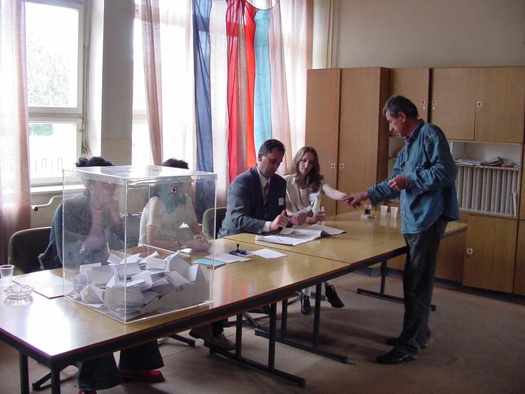 Voting starts in Montenegro's municipal elections, 15 May 2002.