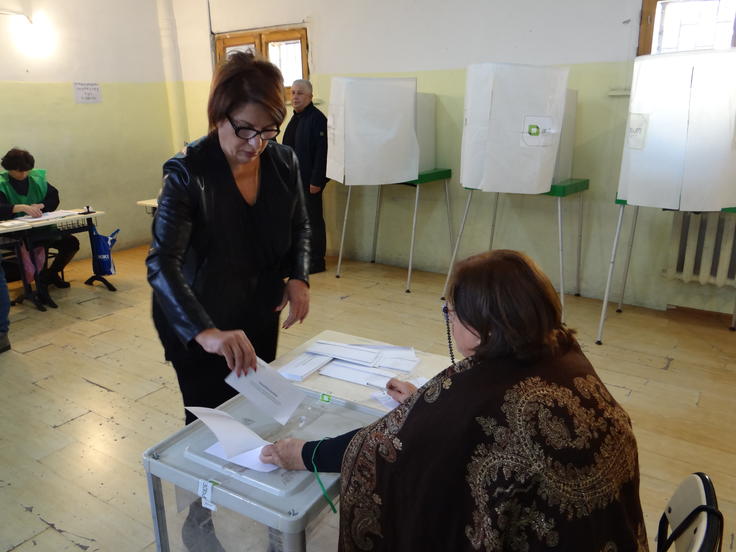 A voter casting her ballot at a polling station in Tbilisi during the second round of the presidential election in Georgia. 28 November 2018.