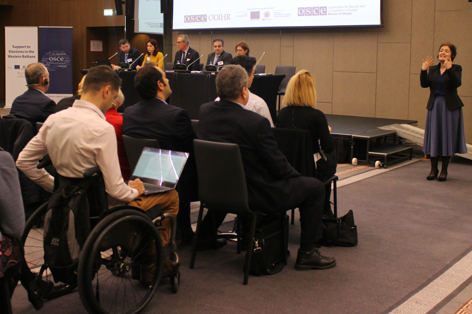 Representatives of national authorities and disabled persons’ organizations participate in an event on enhancing the electoral participation of persons with disabilities, which was organized by the OSCE Office for Democratic Institutions and Human Rights (ODIHR) and the OSCE Mission to Skopje. Skopje, 6 February 2019.