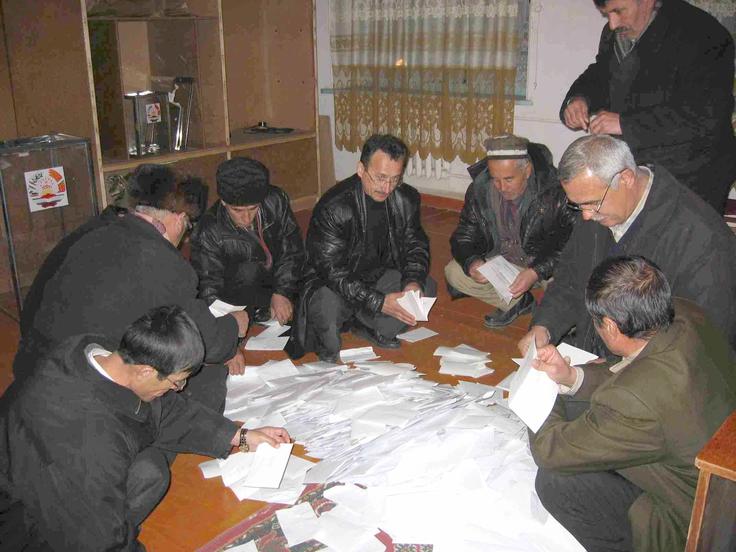 Election officials counting votes at a polling station in the southern town of Kulyab during parliamentary elections in Tajikistan, 27 February 2005.