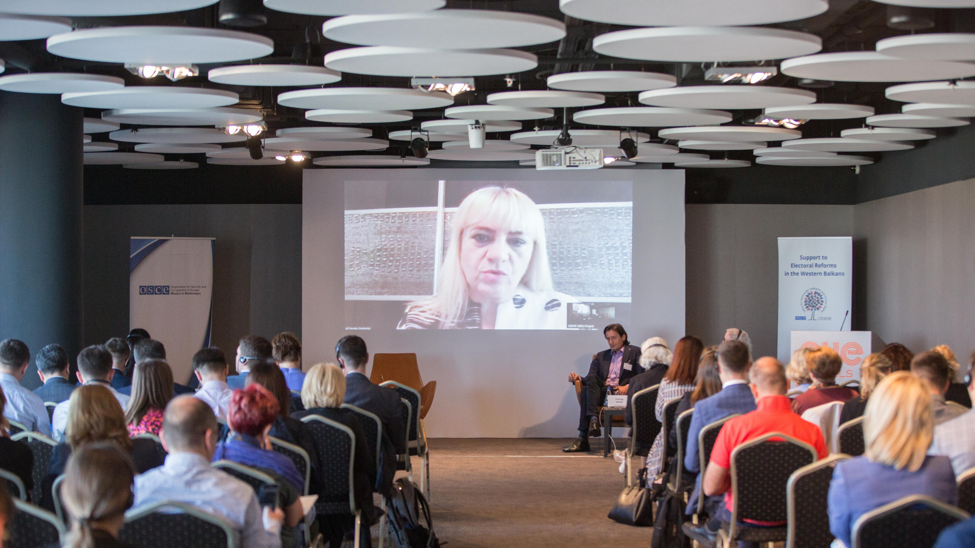 Speaker joining in online for a session at a regional conference to Support Electoral Reform in the Western Balkans, Podgorica, 17-18 May 2022.