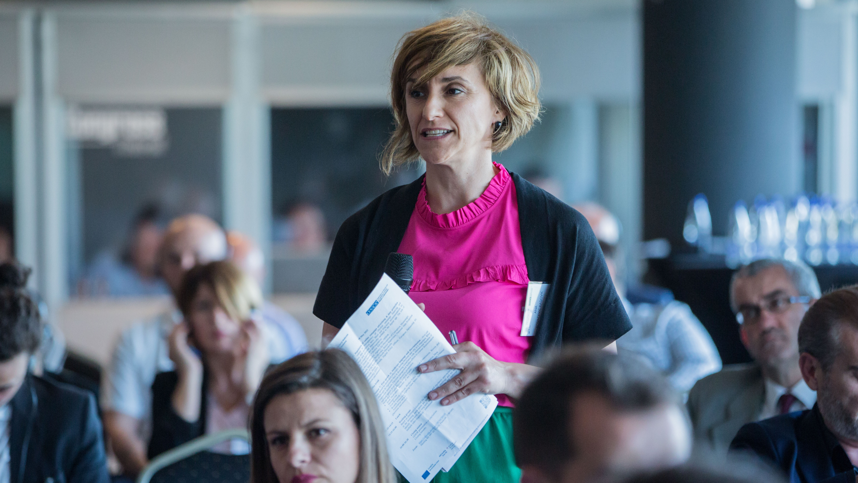 Participant intervening at a regional conference to Support Electoral Reform in the Western Balkans, Podgorica, 17-18 May 2022.