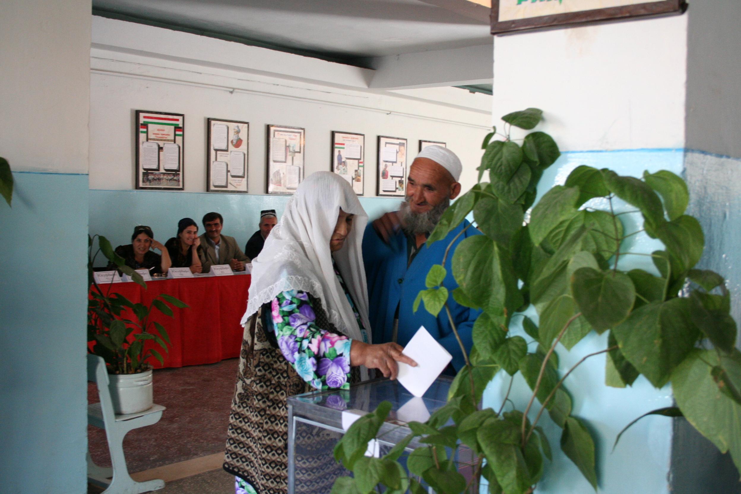 A woman casts her ballot in Dushanbe during Tajikistan's presidential election on 6 November 2006.
