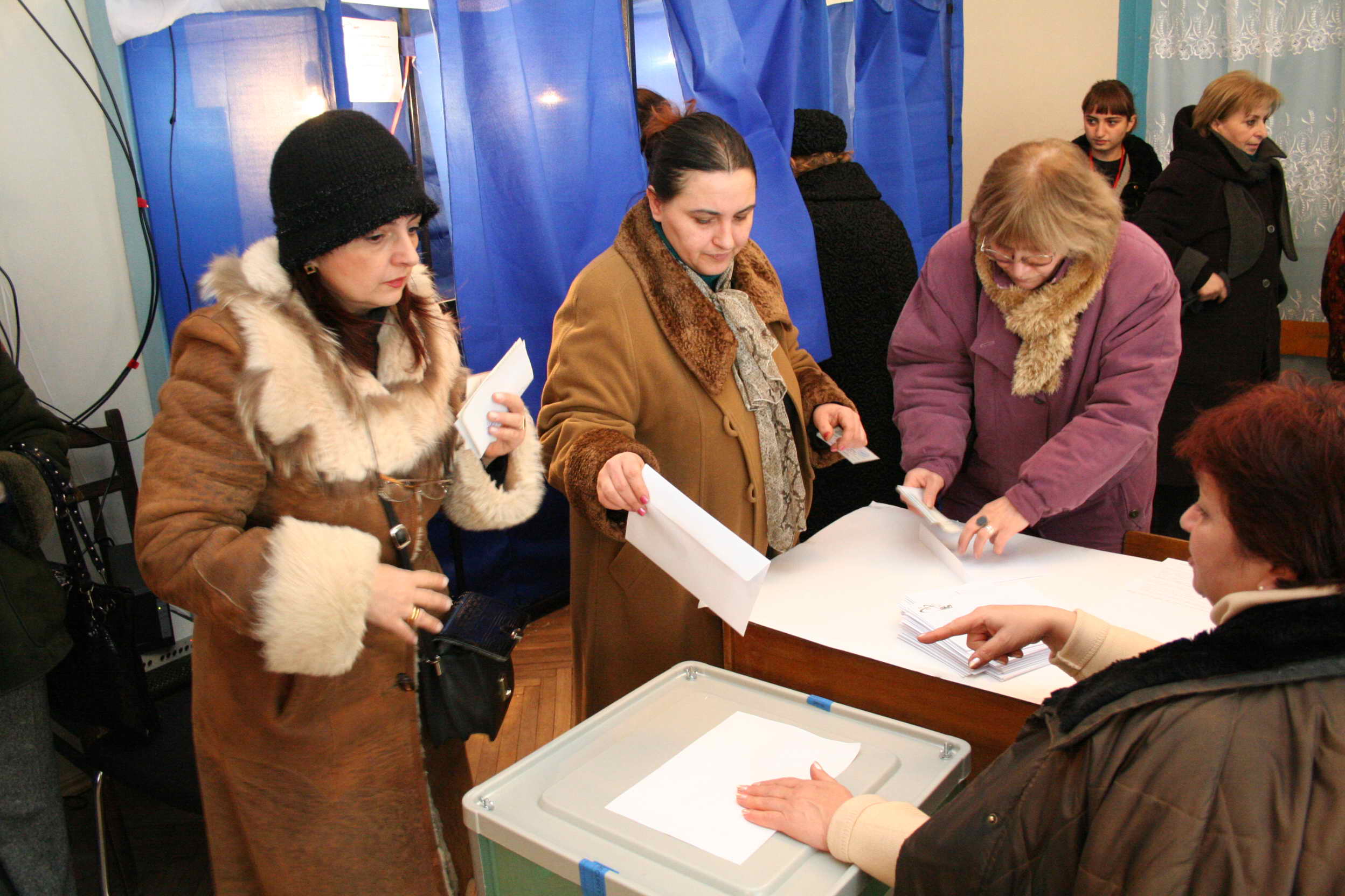Voters cast ballots at a polling station in Tbilisi during the Georgian presidential election, 5 January 2008.