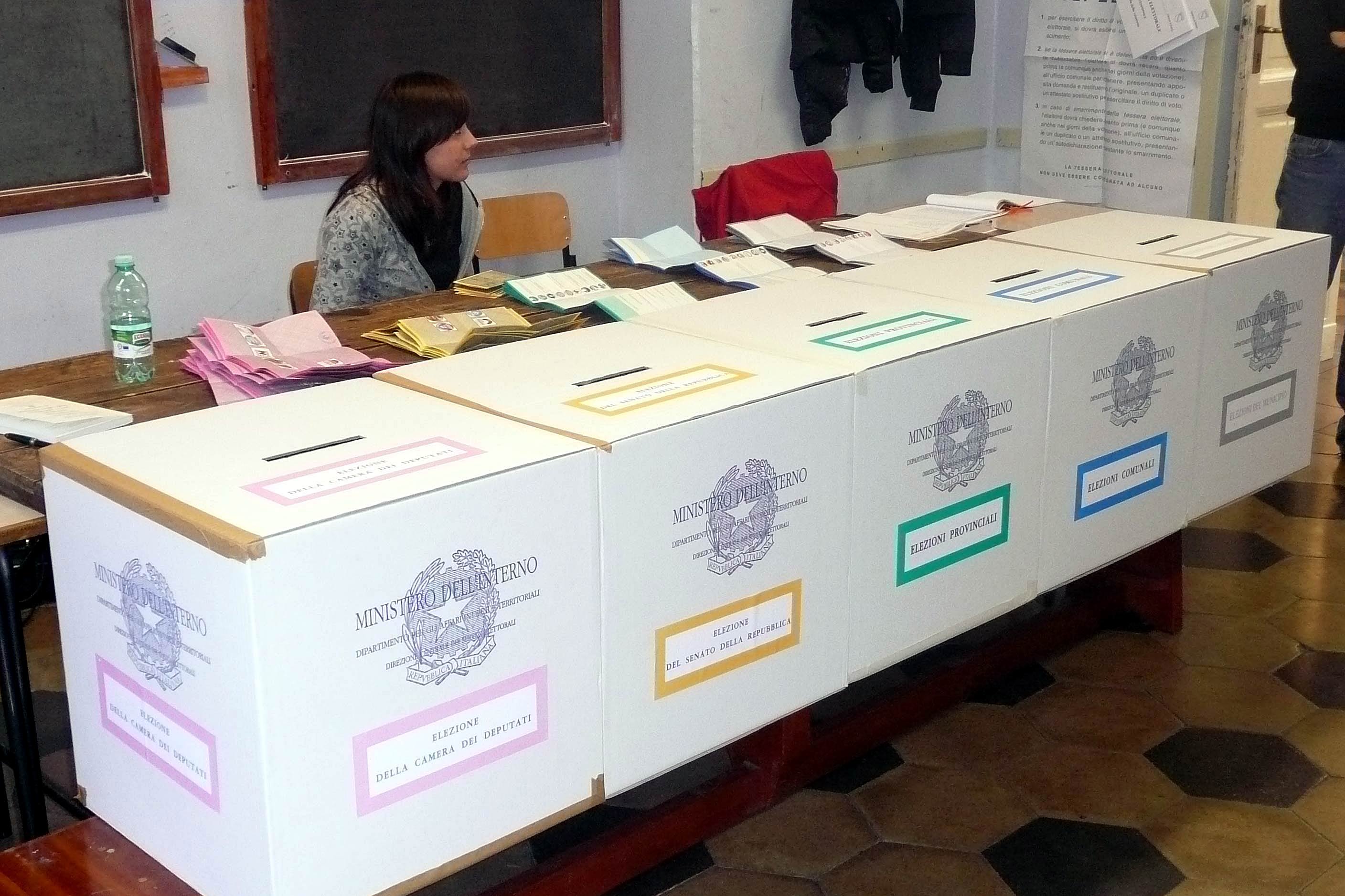 Ballot boxes at a polling station in Rome, for elections to the lower chamber of parliament, senate, provincial government, mayor and municipal council, 13 April 2008.
