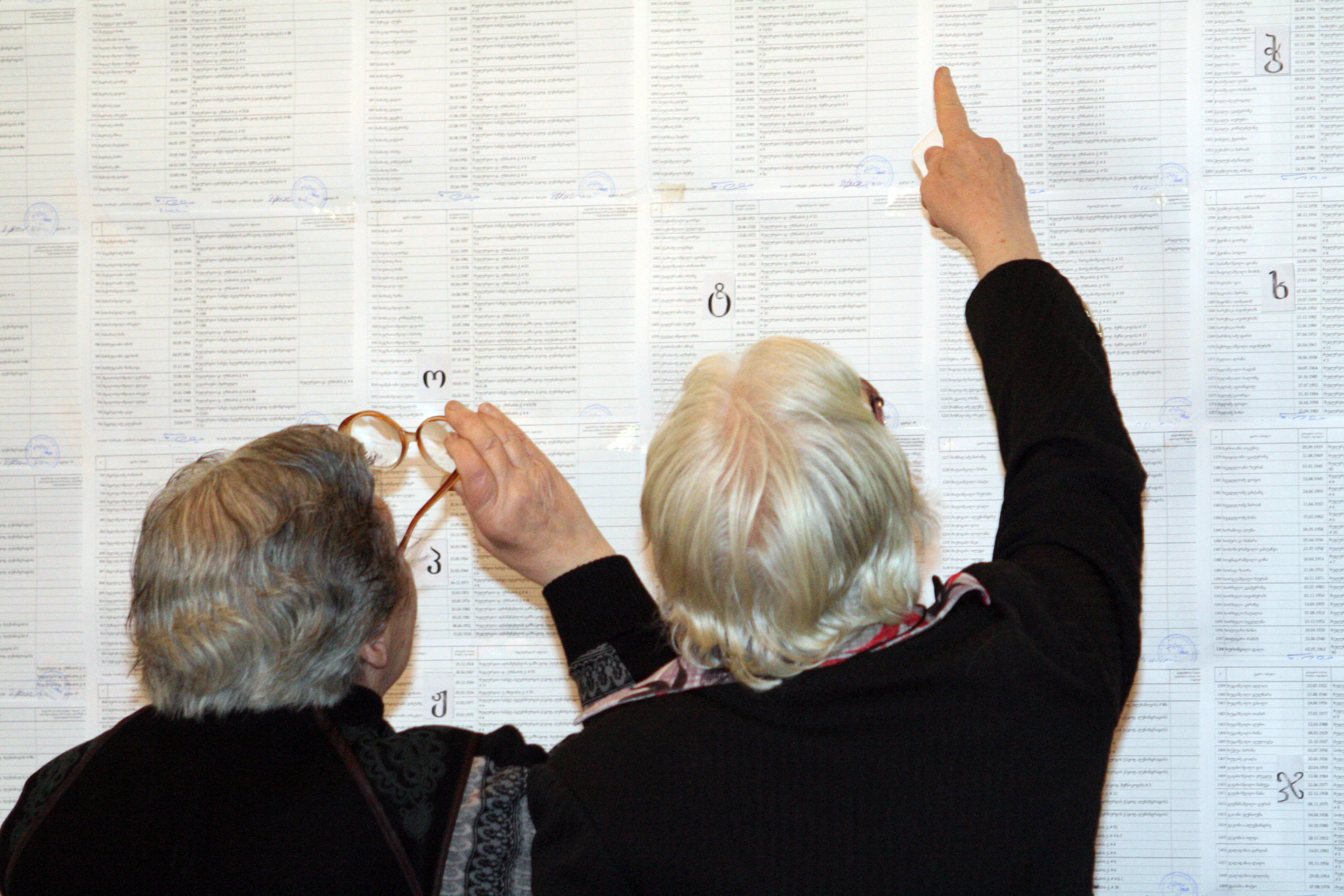 Georgian citizens looking for their names on a voter list during parliamentary elections, in Tbilisi 21 May 2008.