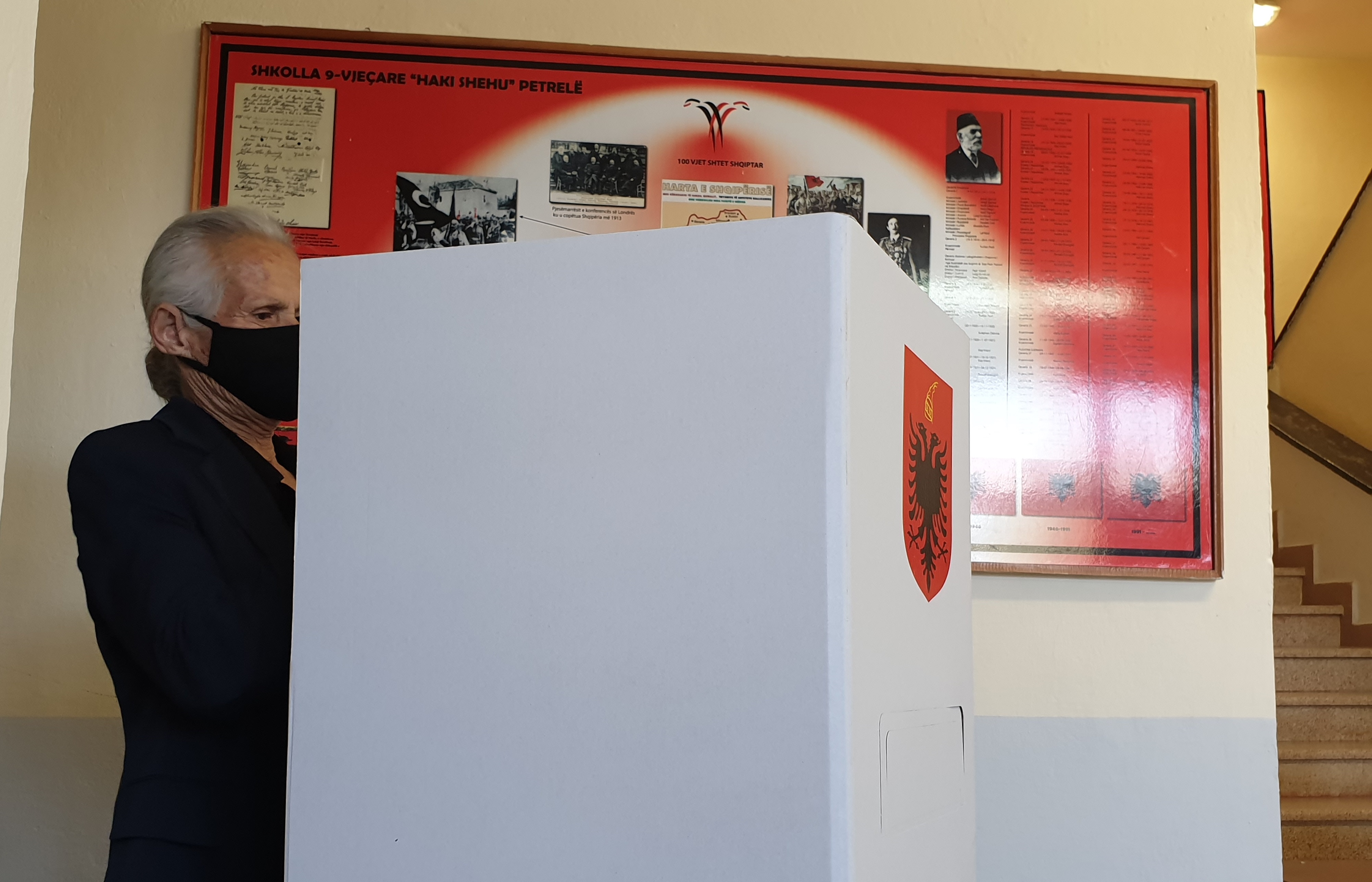 A voter in the village of Petrele casts her ballot in Albania’s parliamentary elections on 25 April 2021.