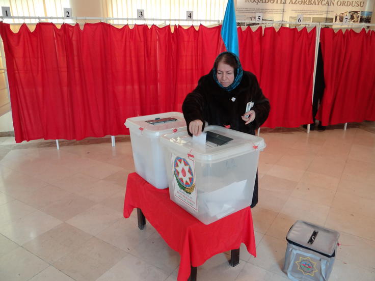 A voter in Baku casting her ballot during parliamentary elections in Azerbaijan, 9 February 2020.