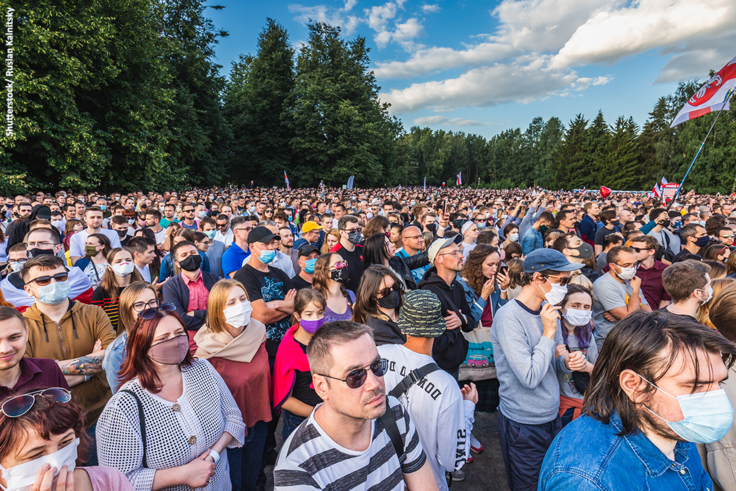 Participants in an election campaign rally in Minsk, Belarus, on 30 July 2020.