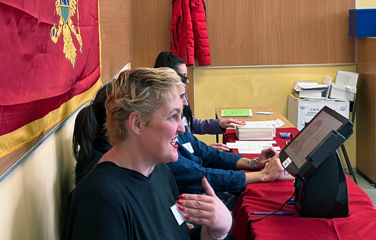 Polling station officials in Podgorica during the first round of the presidential election in Montenegro. 19 March 2023.