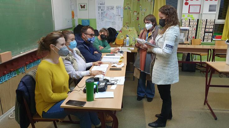 ODIHR observers at a polling station in Skopje during the second round of mayoral elections in North Macedonia, 31 October 2021.
