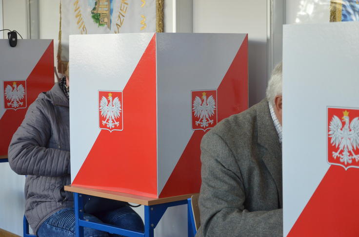 Voters fill out their ballots at Poland's parliamentary elections. Warsaw, 13 October 2019.