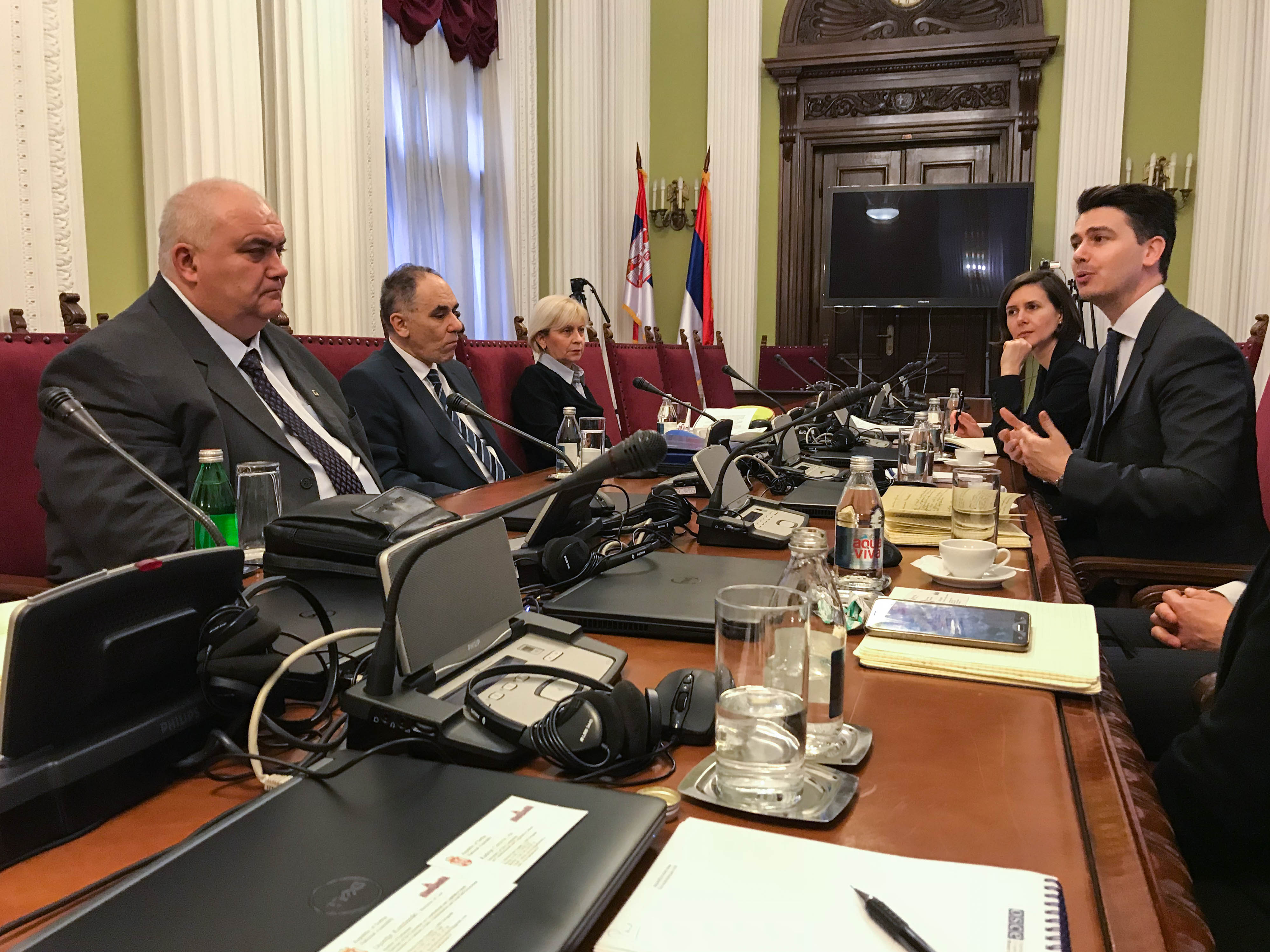 Election experts from the OSCE Office for Democratic Institutions and Human Rights (ODIHR) meeting with representatives of Serbia’s parliamentary Committee on Constitutional and Legislative Issues during a consultation visit to Serbia as part of the ODIHR project Support to Elections in the Western Balkans. 30 January 2018, Belgrade.