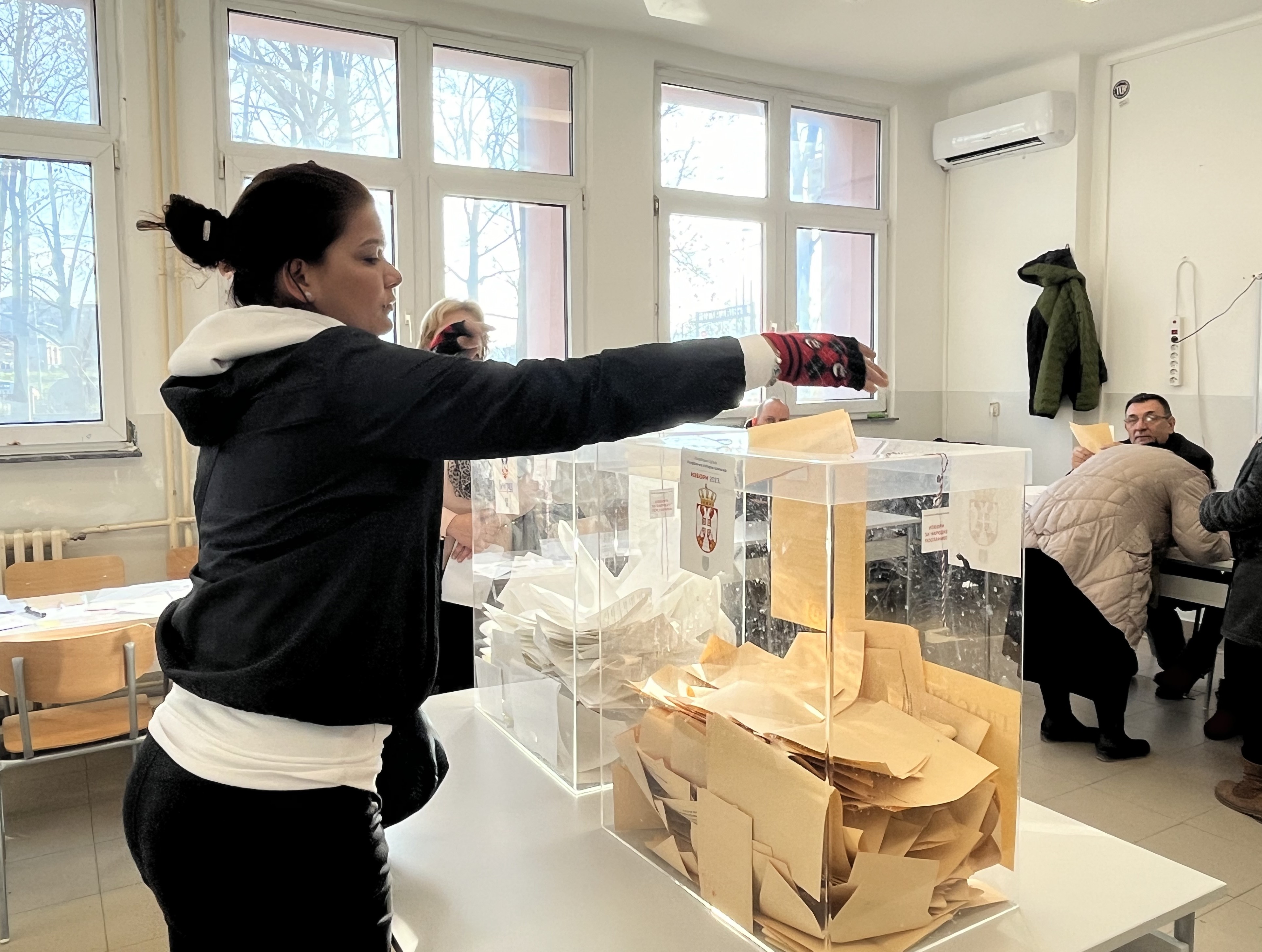 A voter casts her ballot in Serbia's early parliamentary elections. Belgrade, 17 December 2023.