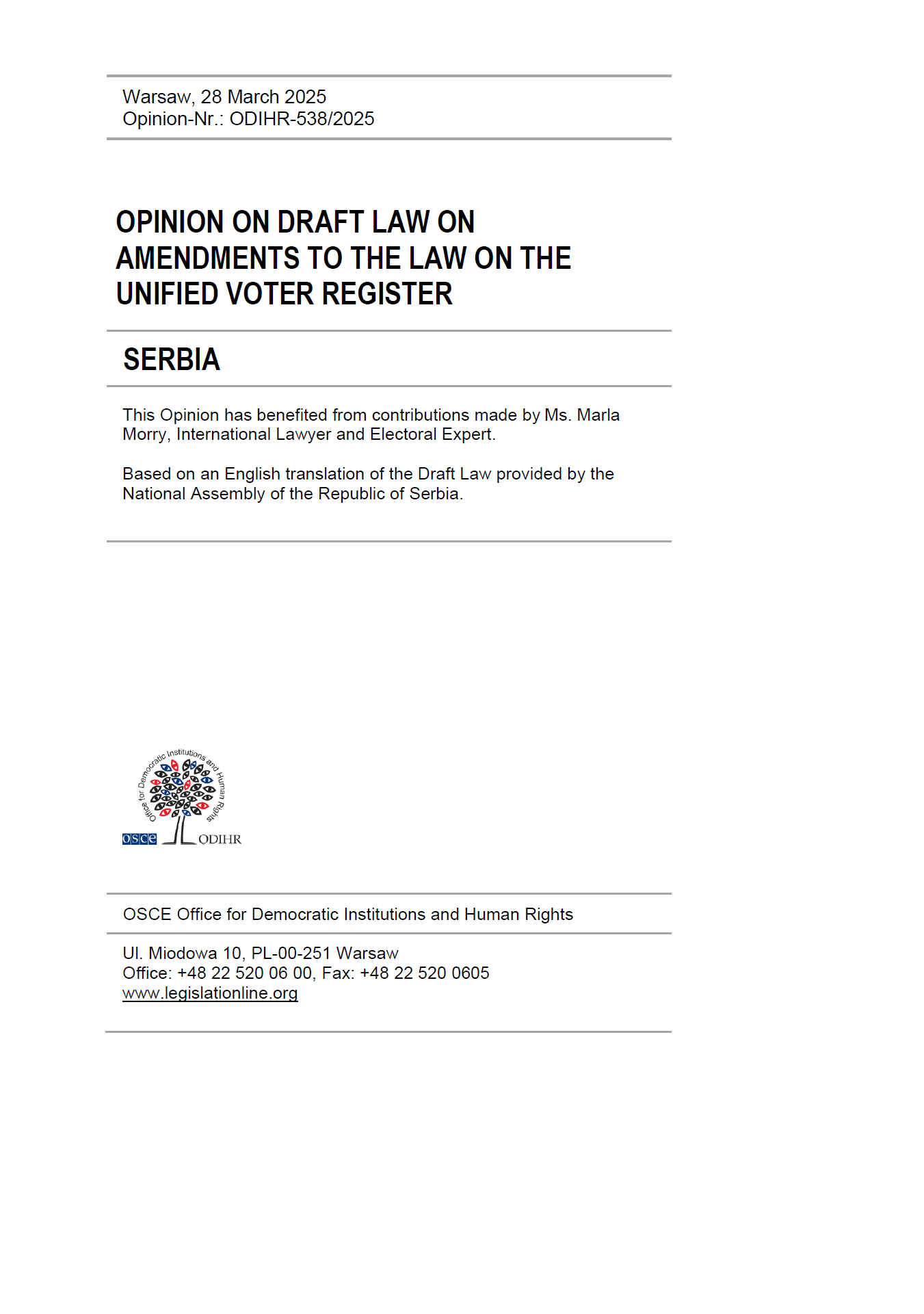 Serbia: Opinion on Draft Law on Amendments to the Law on the Unified Voter Register