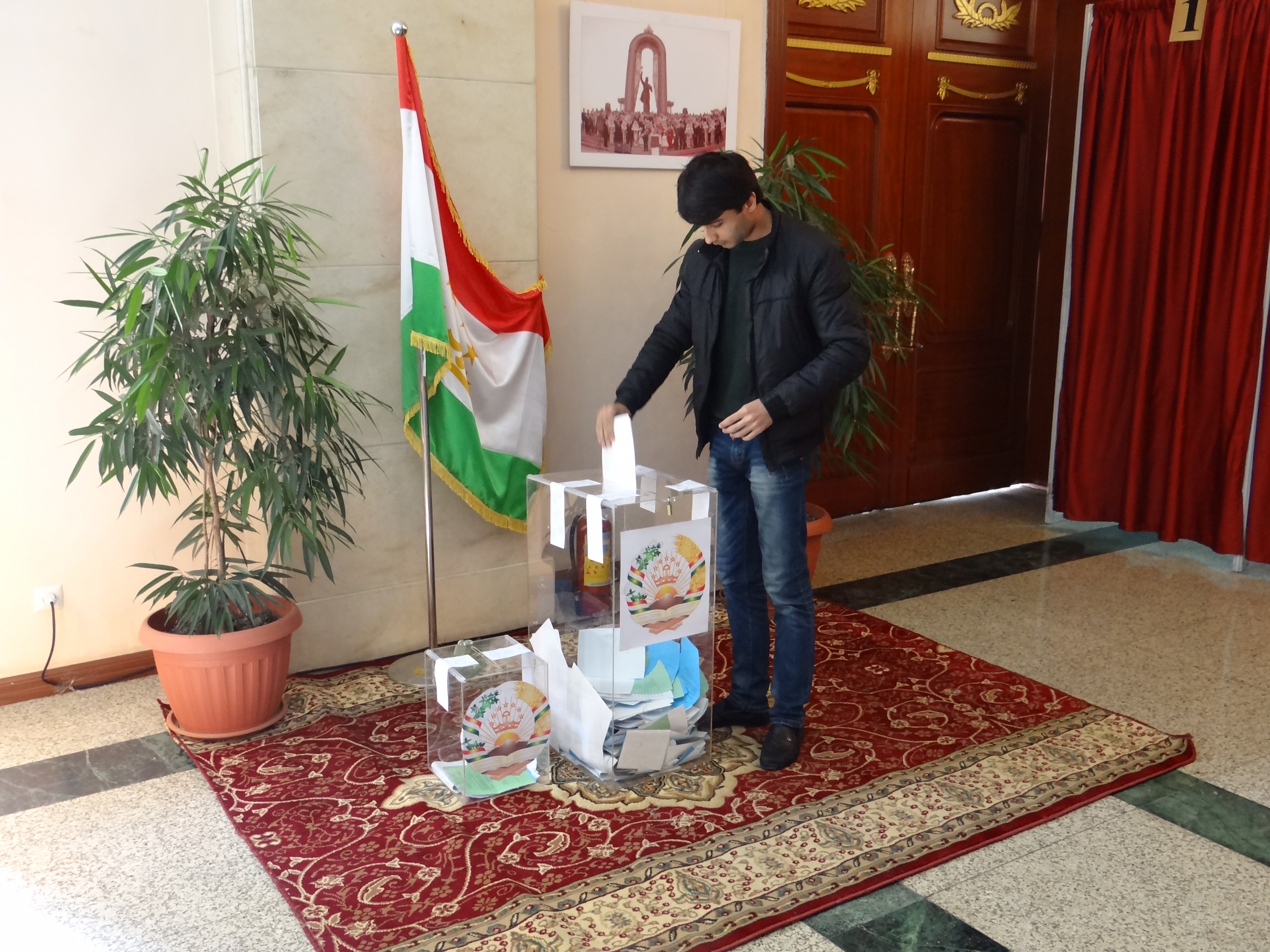 A voter casting his ballot during parliamentary elections in Tajikistan, 1 March 2014