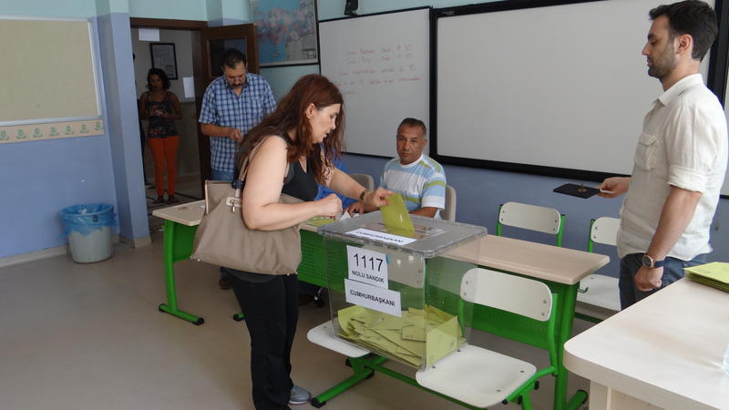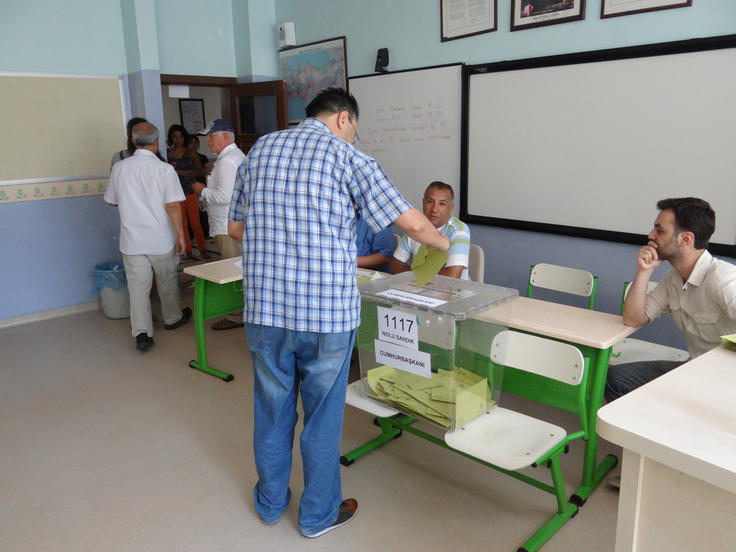 A voter in Ankara casts his ballot during the presidential election in Turkey, 10 August 2014.