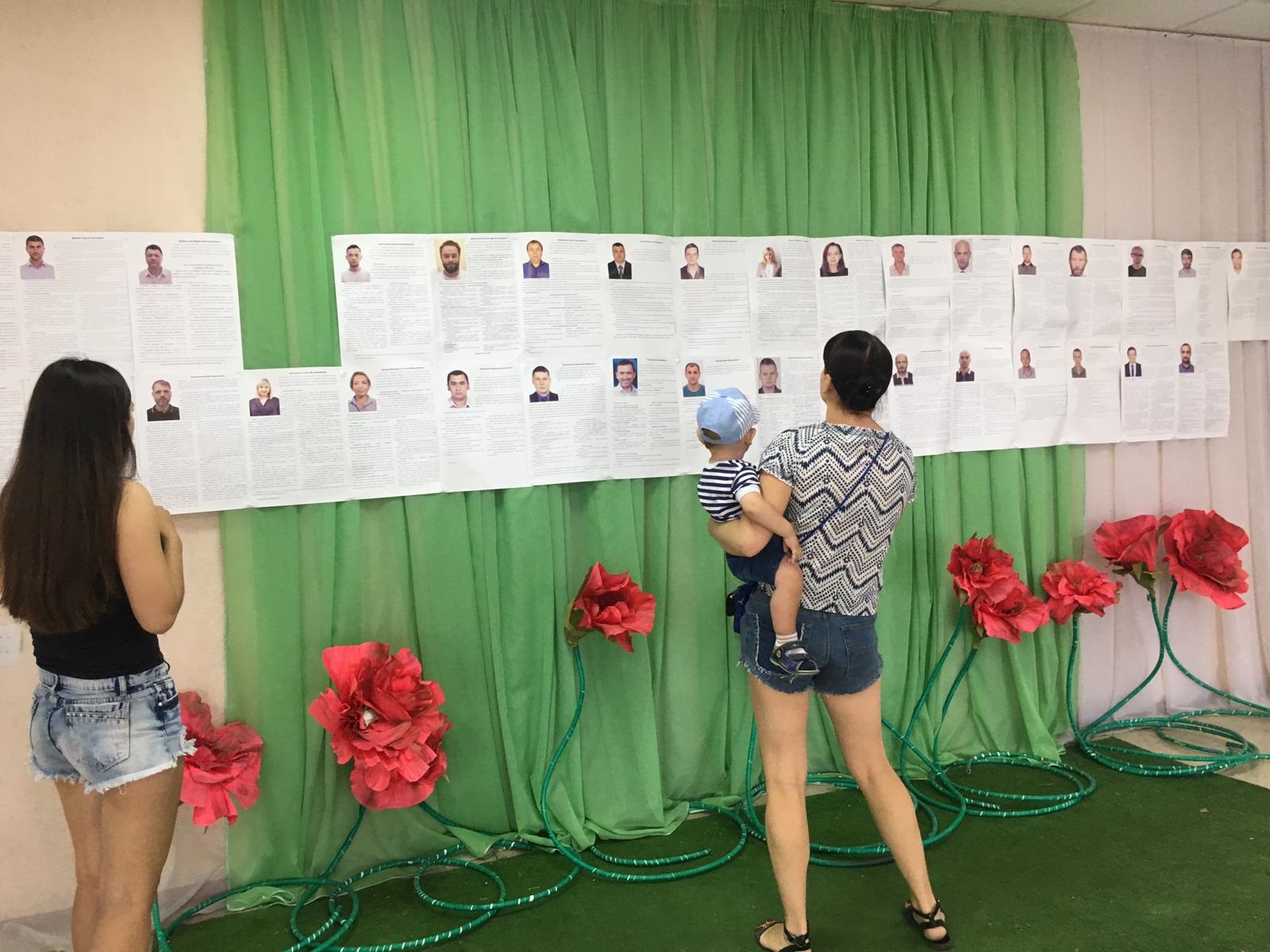 Voters consult candidate information during Ukraine's early parliamentary elections. Kyiv, 21 July 2019.
