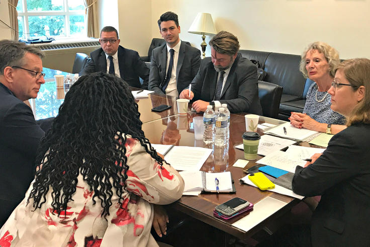 Ambassador Audrey Glover (2nd from right), Head of the ODIHR election observation mission for the 8 November 2016 elections in the United States, and elections expert's from ODIHR presenting the Office's final report to representatives of the of U.S. Helsinki Commission in Washington D.C., 12 July 2017.