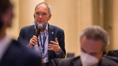 ODIHR Director Matteo Mecacci listening to a panel discussion on promoting and protecting human rights and fundamental freedoms together at ODIHR's 30th anniversary conference. Warsaw, 15 October 2021.