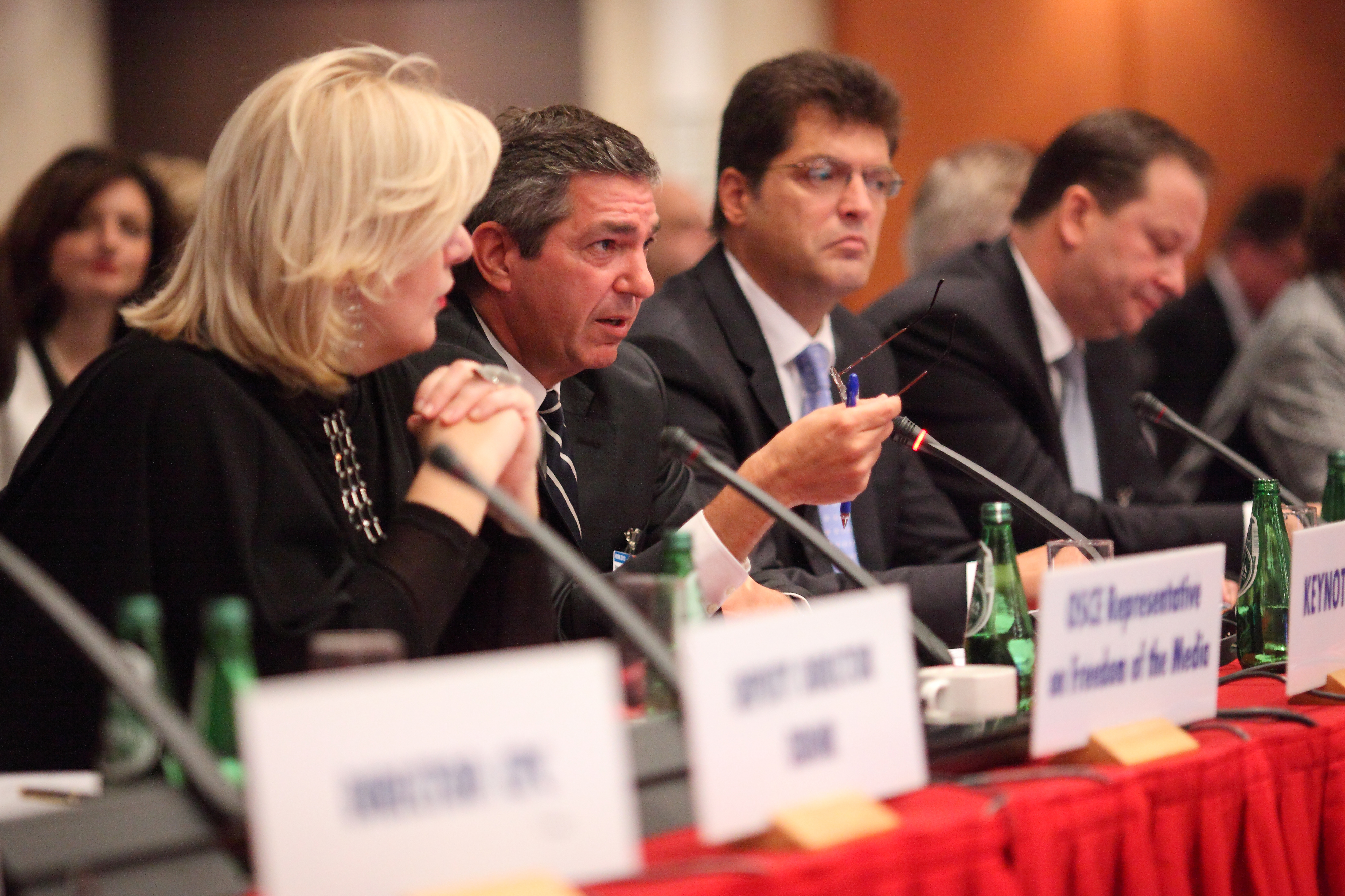 Stavros Lambrinidis (c), EU Special Representative for Human Rights, addresses participants of the opening session of the OSCE Human Dimension Implementation Meeting, Warsaw, 23 September 2013.