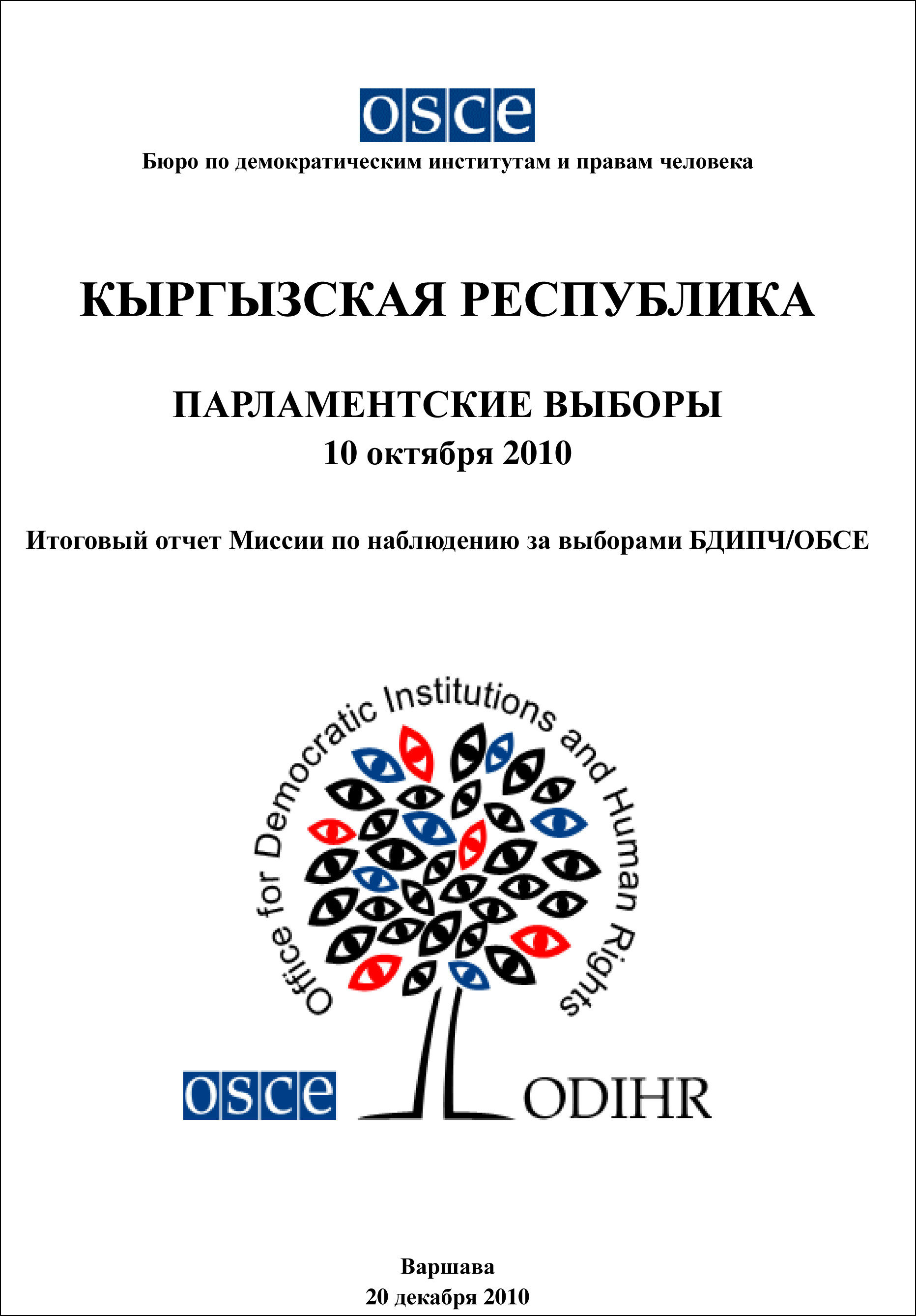 Обложка публикации Кыргызская Республика Парламентские Выборы 10 октября 2010.