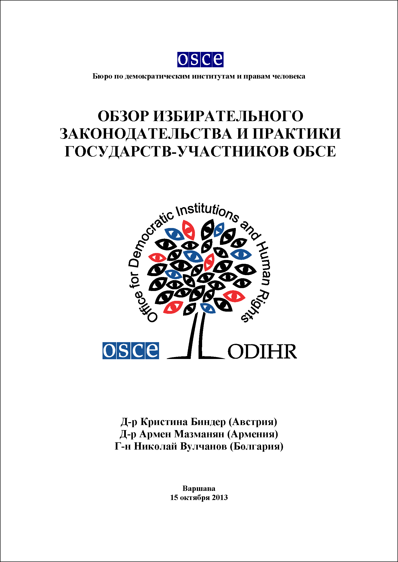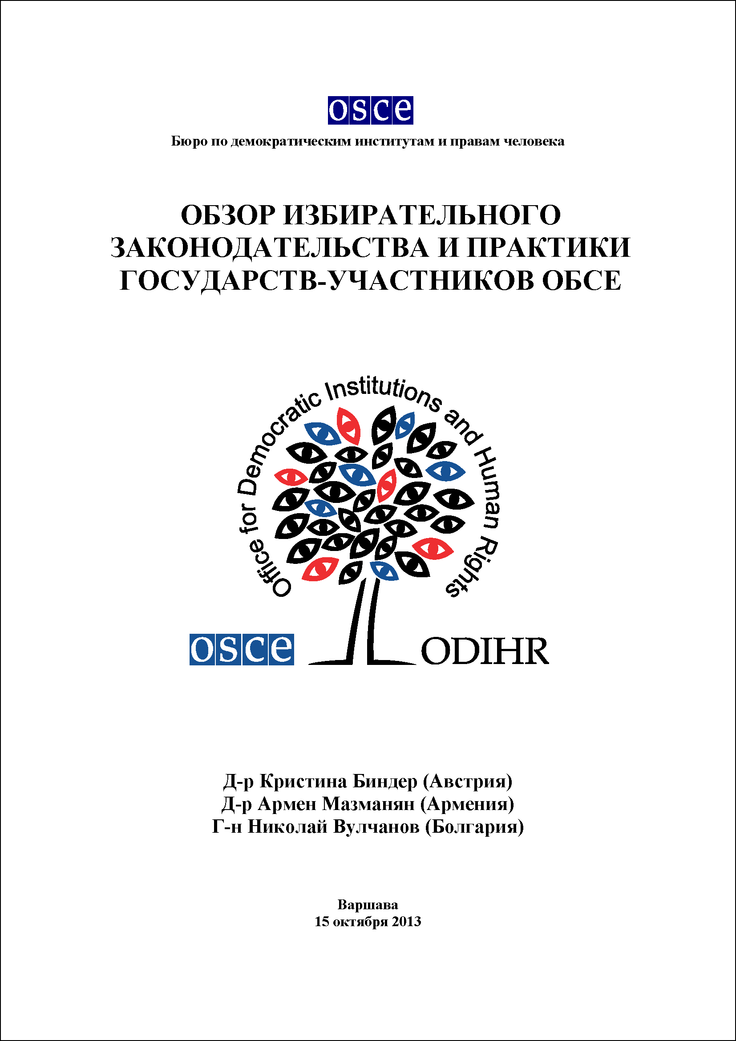 Front cover of the Russian translation of "A Review of Electoral Legislation and Practice in OSCE Participating States, 2013"