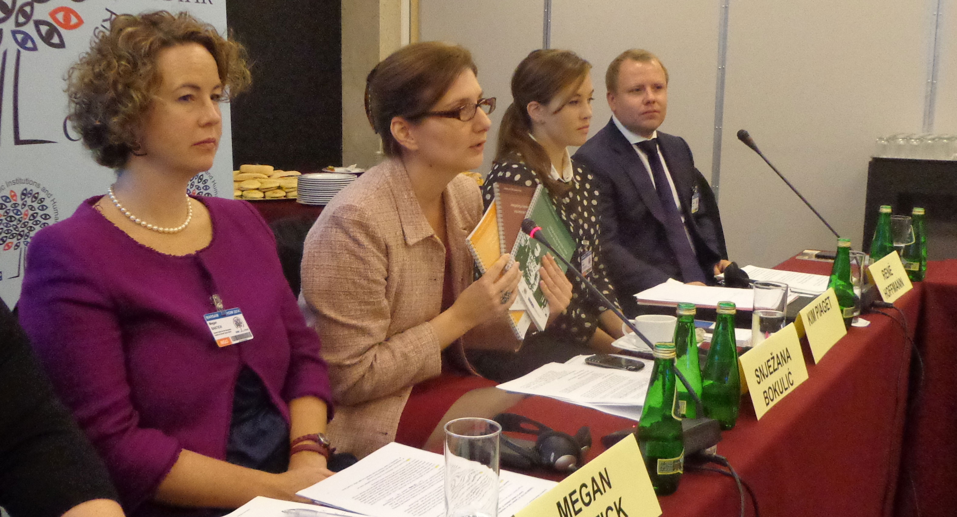 Снежана Бокулич, руководитель департамента БДИПЧ по правам человека, представляет методические рекомендации "Учет гендерной проблематики в надзоре за сектором безопасности" в рамках Совещания по рассмотрению выполнения обязательств, посвященного человеческому измерению, Варшава, 26 сентября 2014 г.