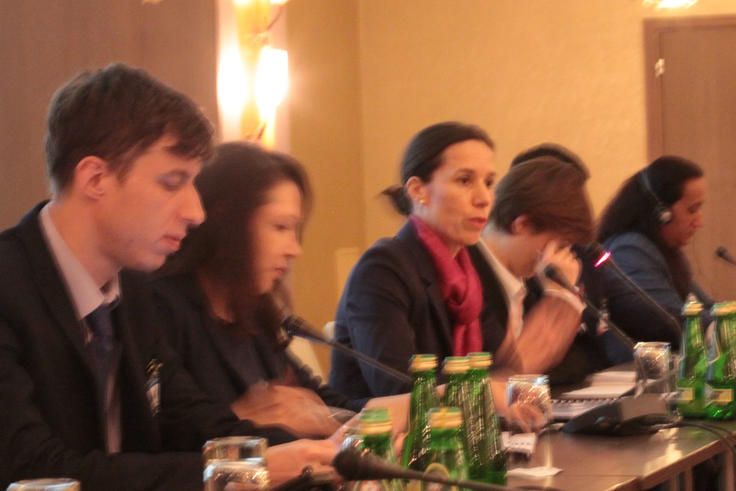 Ораторы, выступающие на заседании по положению рома в Украине в рамках Совещания по рассмотрению выполнения обязательств, посвященного человеческому измерению, Варшава, 29 сентября 2014 г.