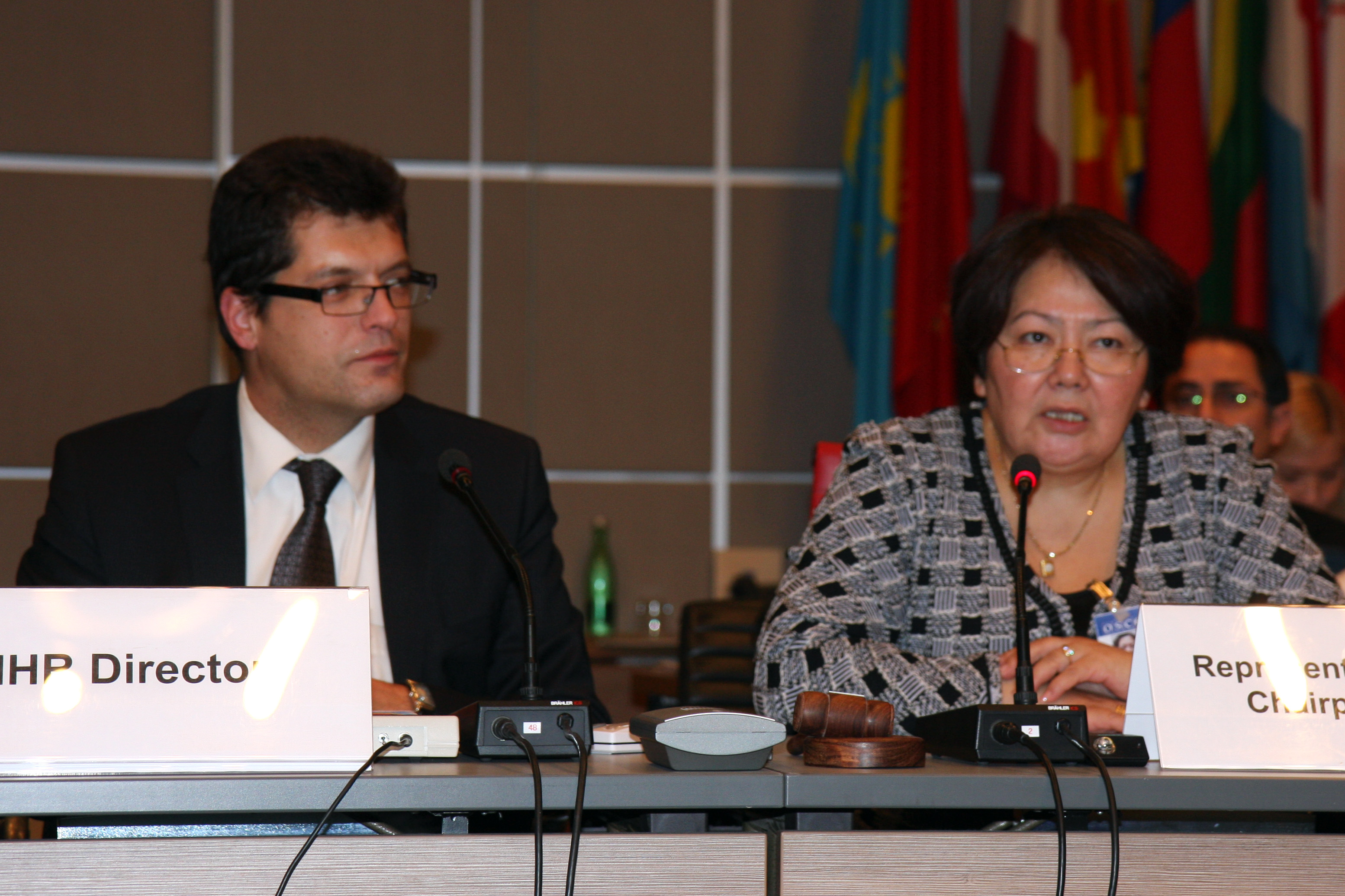 ODIHR Director Ambassador Janez Lenarcic (l) and representative of the OSCE Chairperson-in-Office Ambassador Madina Jarbussynova at a meeting on freedom of religion or belief, Vienna, 9 December 2010.