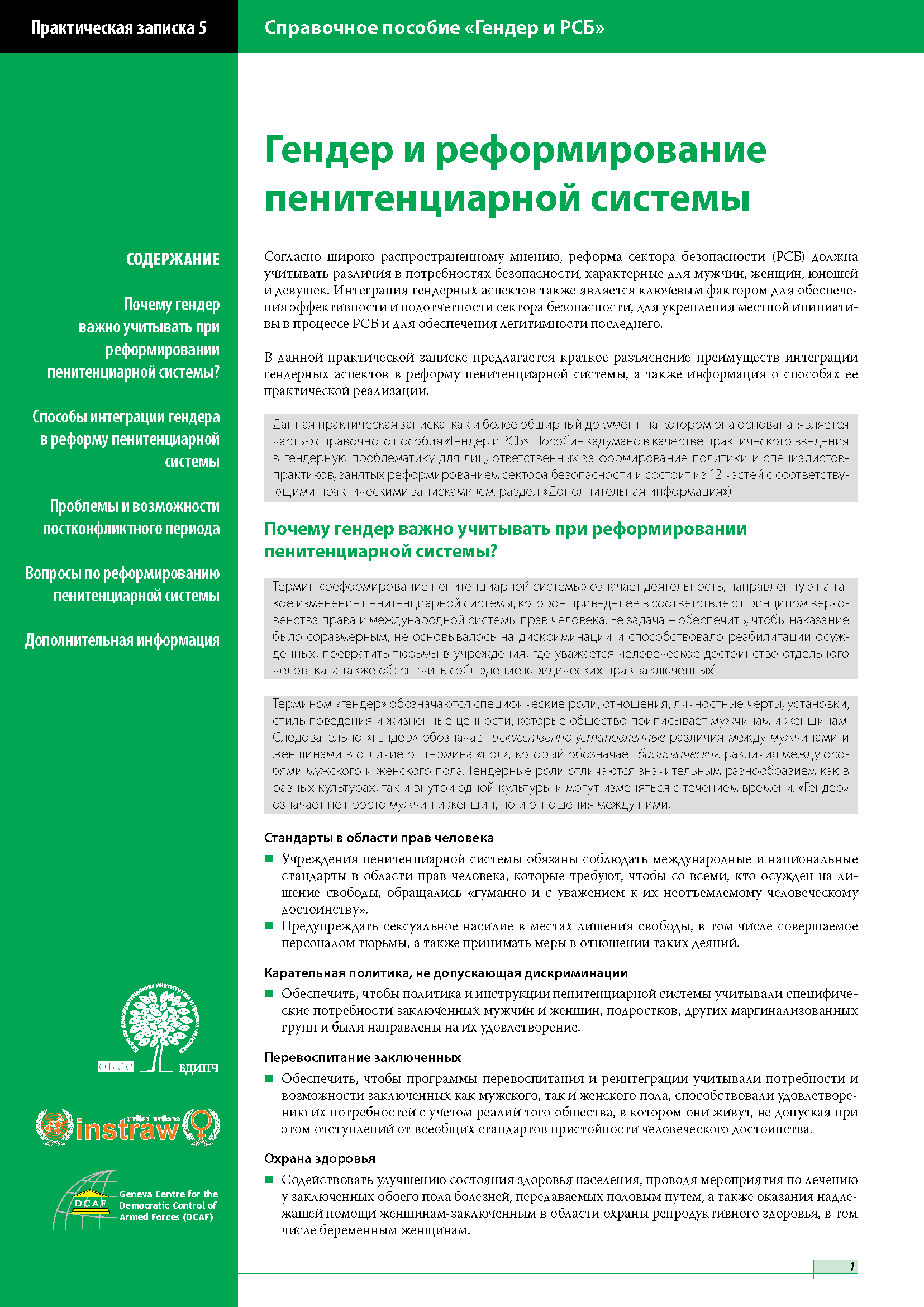 Russian translation of the Gender and Security Sector Reform Toolkit - Practice Note 5